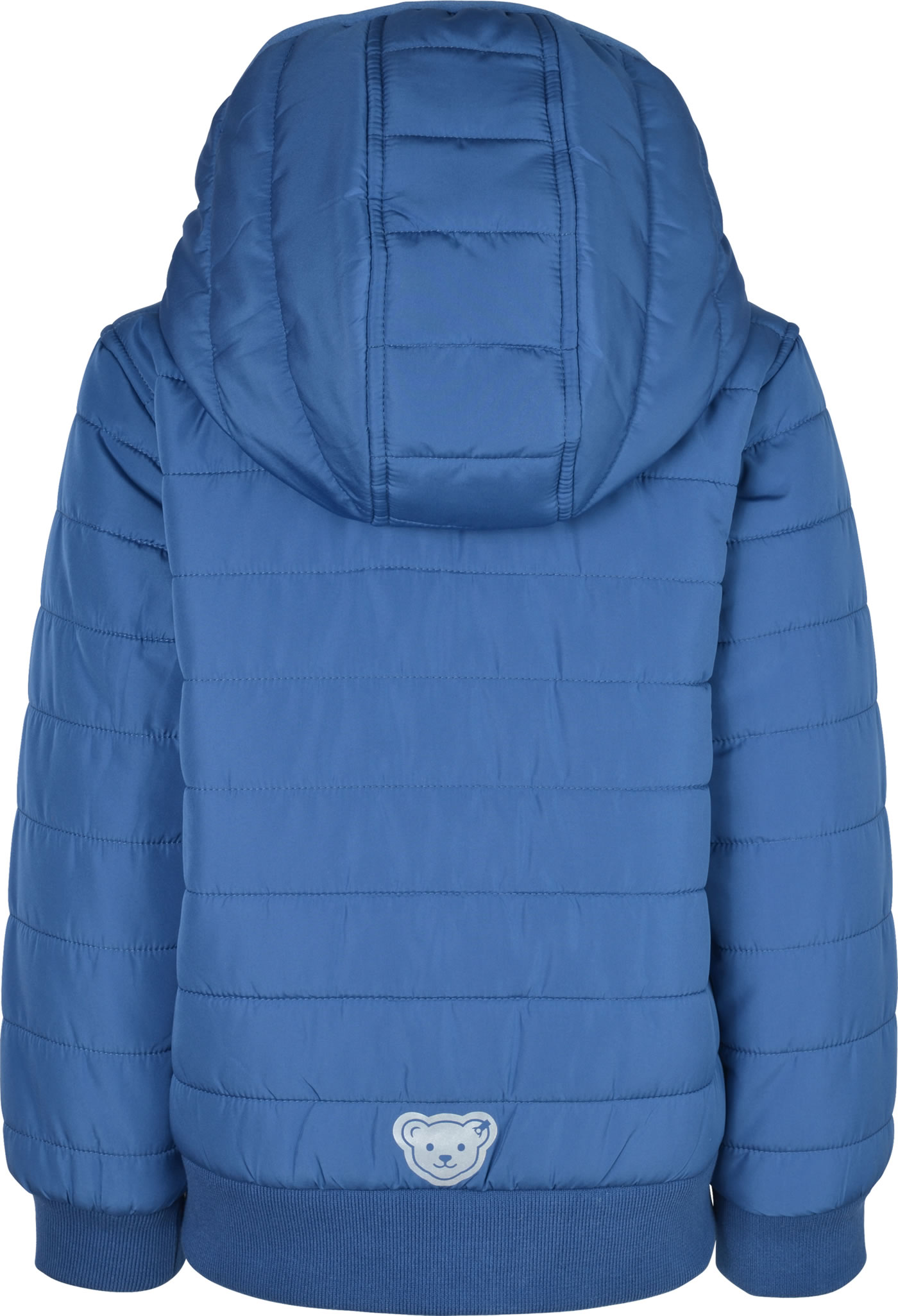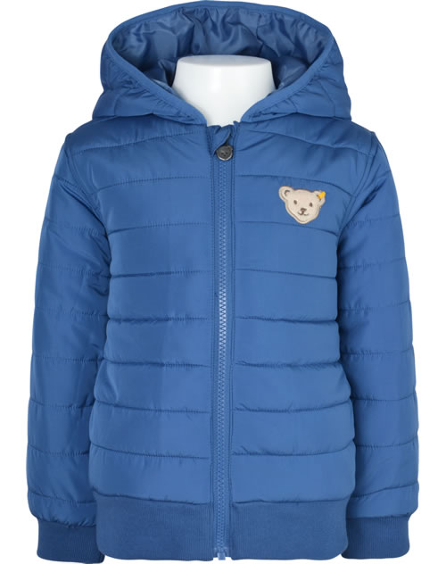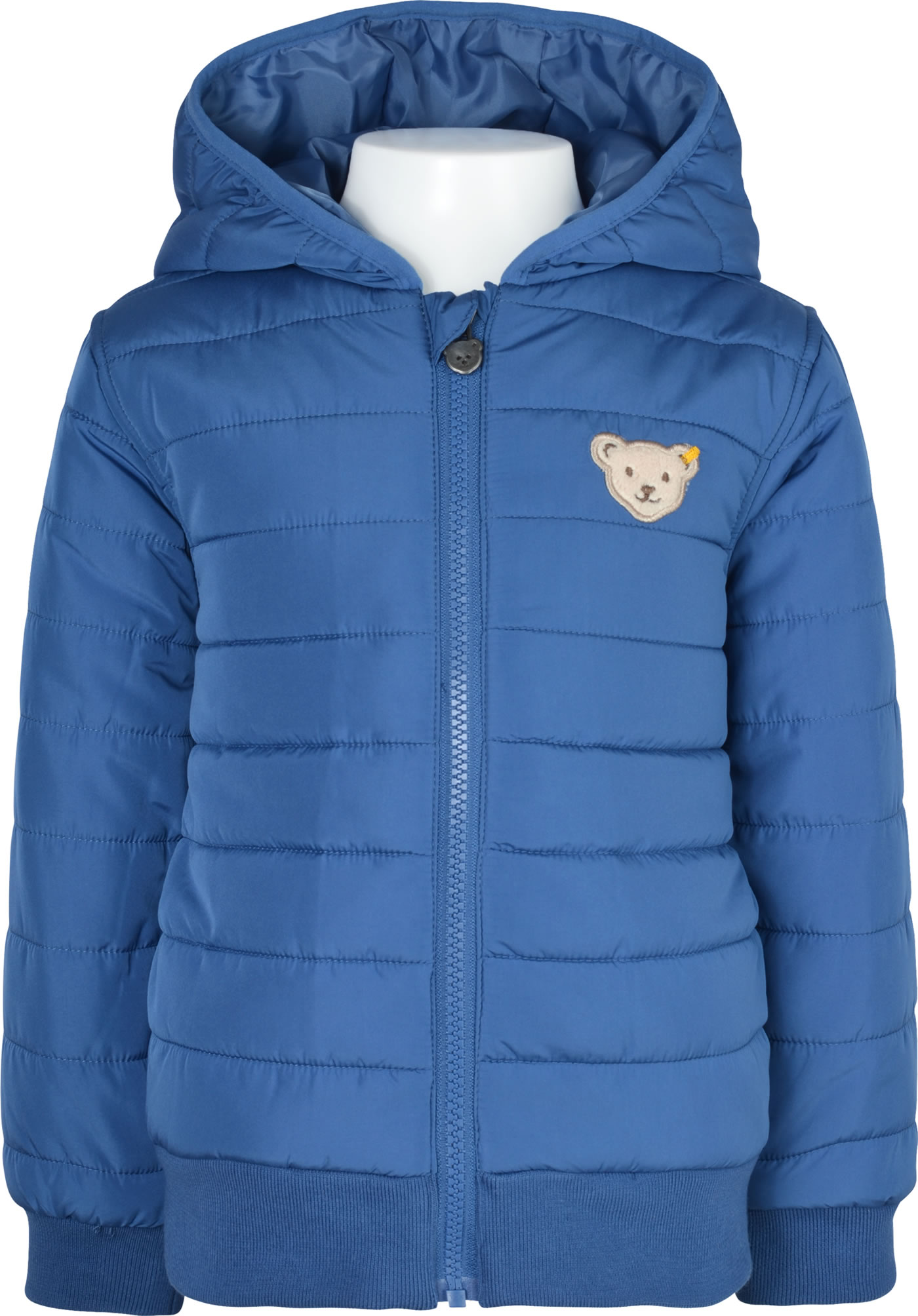 Ein Allrounder für jedes Wetter: Die leichte Steppjacke von STEIFF mit Kapuze in blau ist schick und niedlich zugleich. Sie ist atmungsaktiv und wasserabweisend und mit einer umweltfreundlichen, fluorfreien BIONIC-FINISH®ECO Imprägnierung ausgestattet. Reflektierende Details sorgen für bessere Sichtbarkeit. Zwei Eingrifftaschen bieten Platz für Kleinigkeiten. Ein kleiner Steiff-Bär Patch befindet sich auf der Brust. Die warme Wattierung garantiert kein Frieren an kühlen Tage.