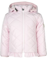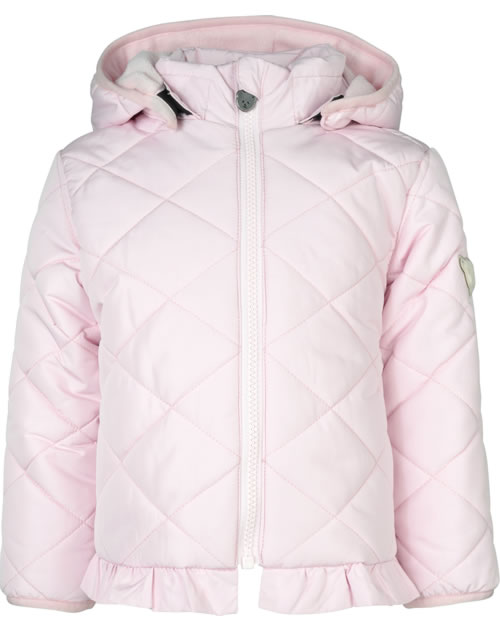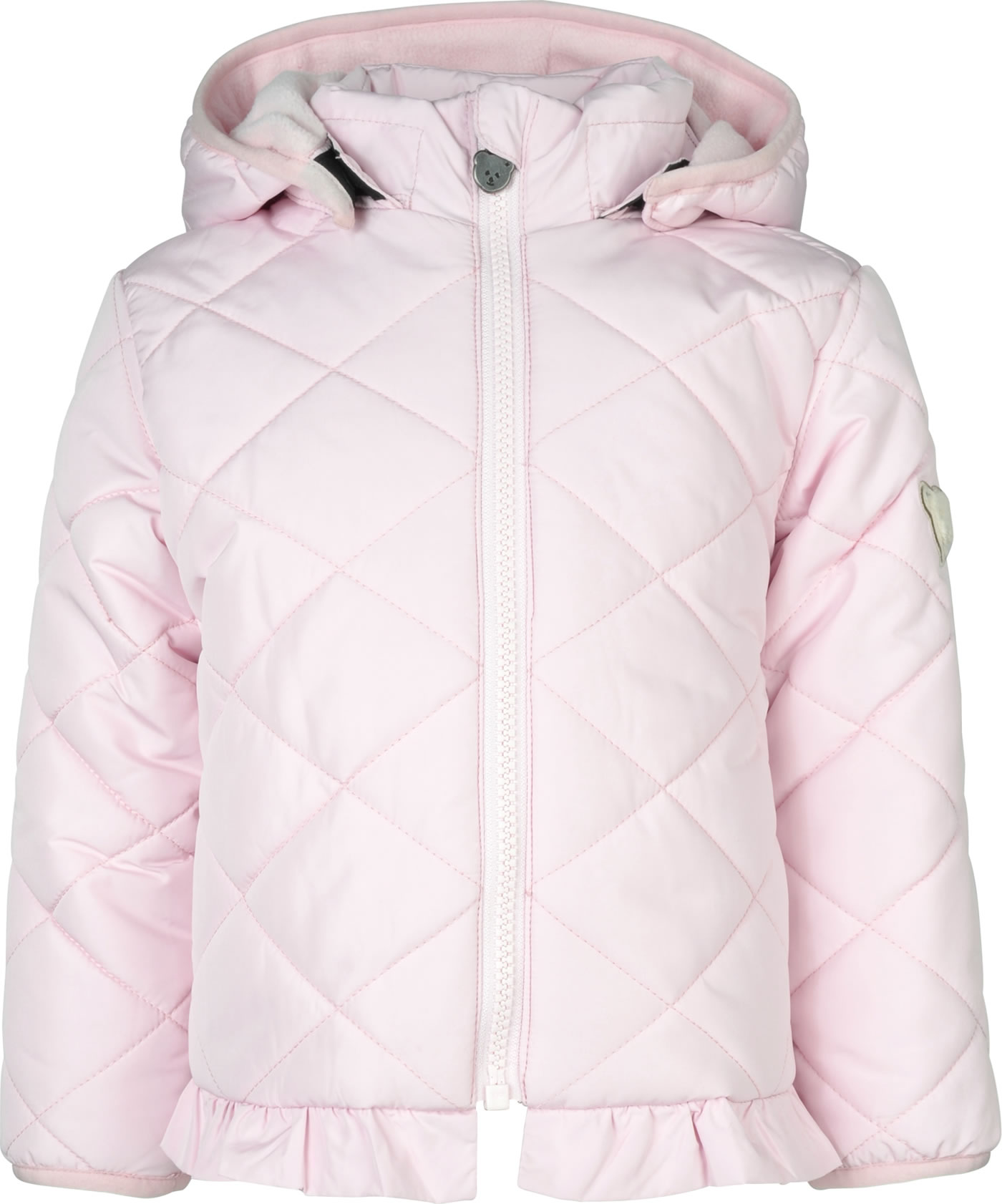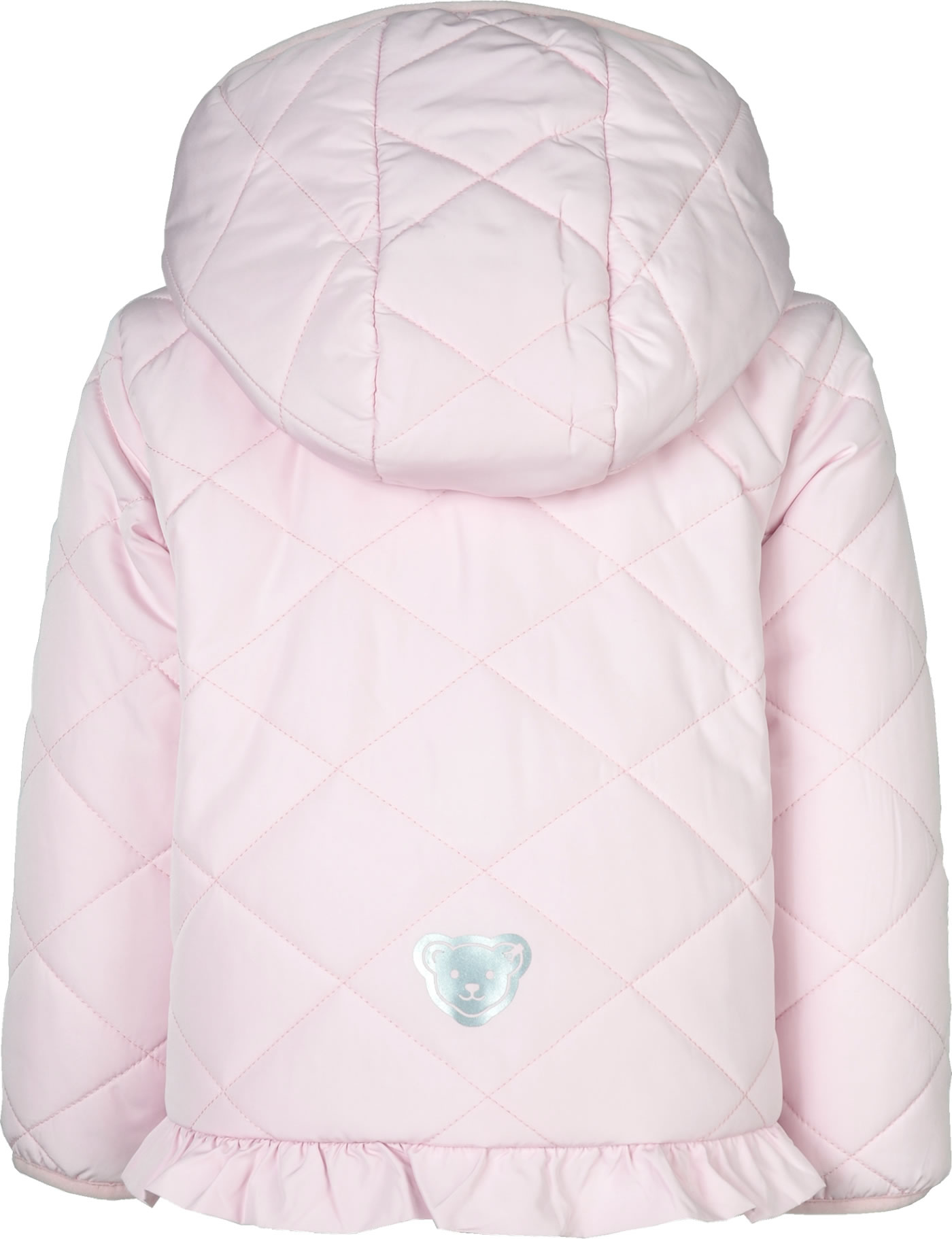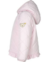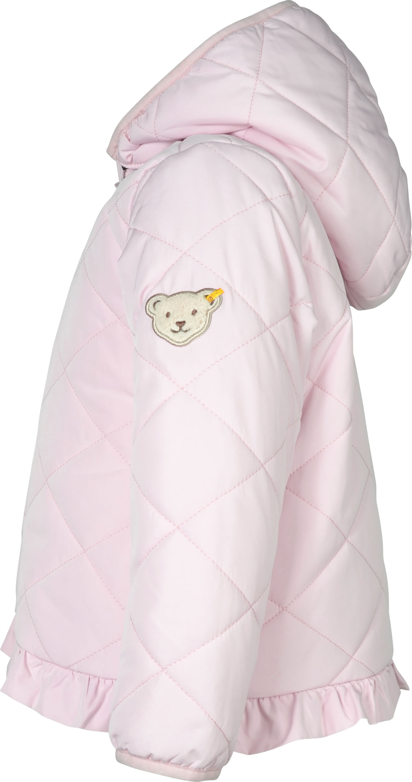Ein Allrounder für jedes Wetter: Die leichte Rauten-Steppjacke von STEIFF mit Stehkragen und abnehmbarer Kapuze in Pink mit kleinen Volants am Saum ist schick und niedlich zugleich. Sie ist atmungsaktiv und wasserabweisend und mit einer umweltfreundlichen, fluorfreien BIONIC-FINISH®ECO Imprägnierung ausgestattet. Reflektierende Details sorgen für bessere Sichtbarkeit. Ein kleiner Steiff-Bär Patch befindet sich am linken Arm.