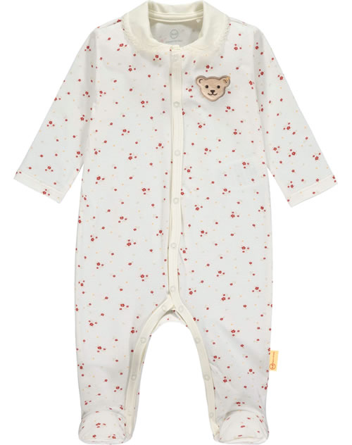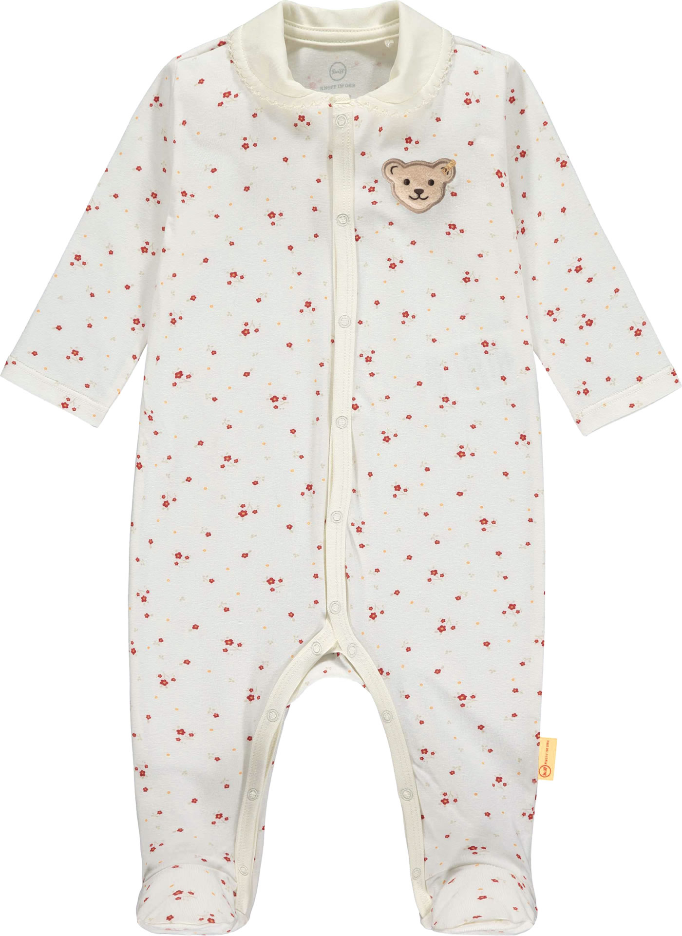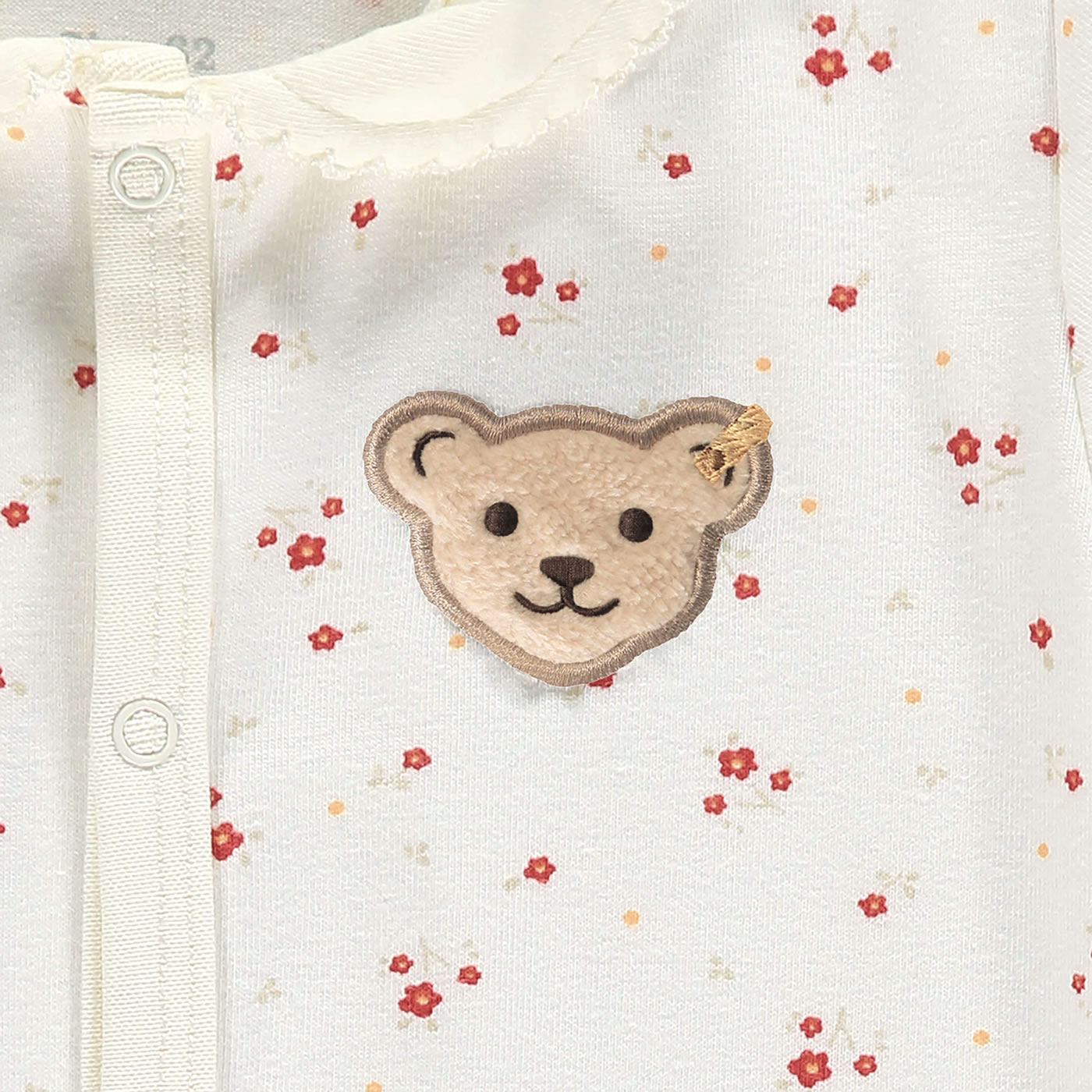 Langarm-Strampler aus der Best Friends-Kollektion von STEIFF. Der STEIFF Bär befindet sich auf der Brust. Weitere hübsche Details sind die mäusezähnchenkante am Kragen und das zarte Blumenmuster. Die durchgehende Druckknopfleiste erleichtert das An- und Ausziehen.