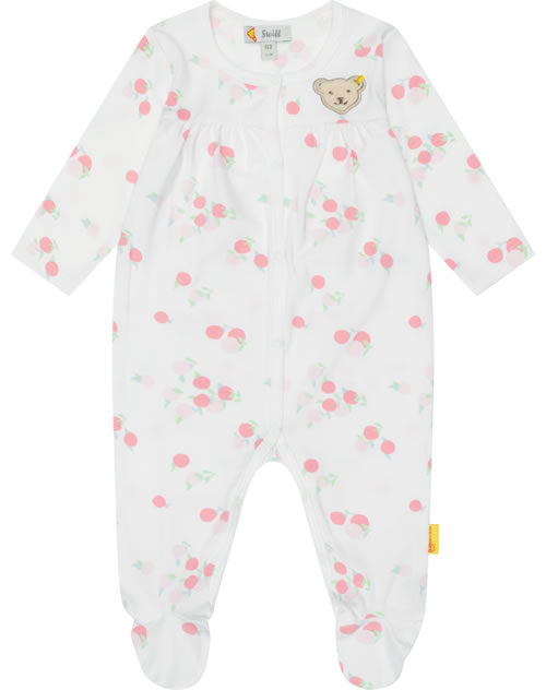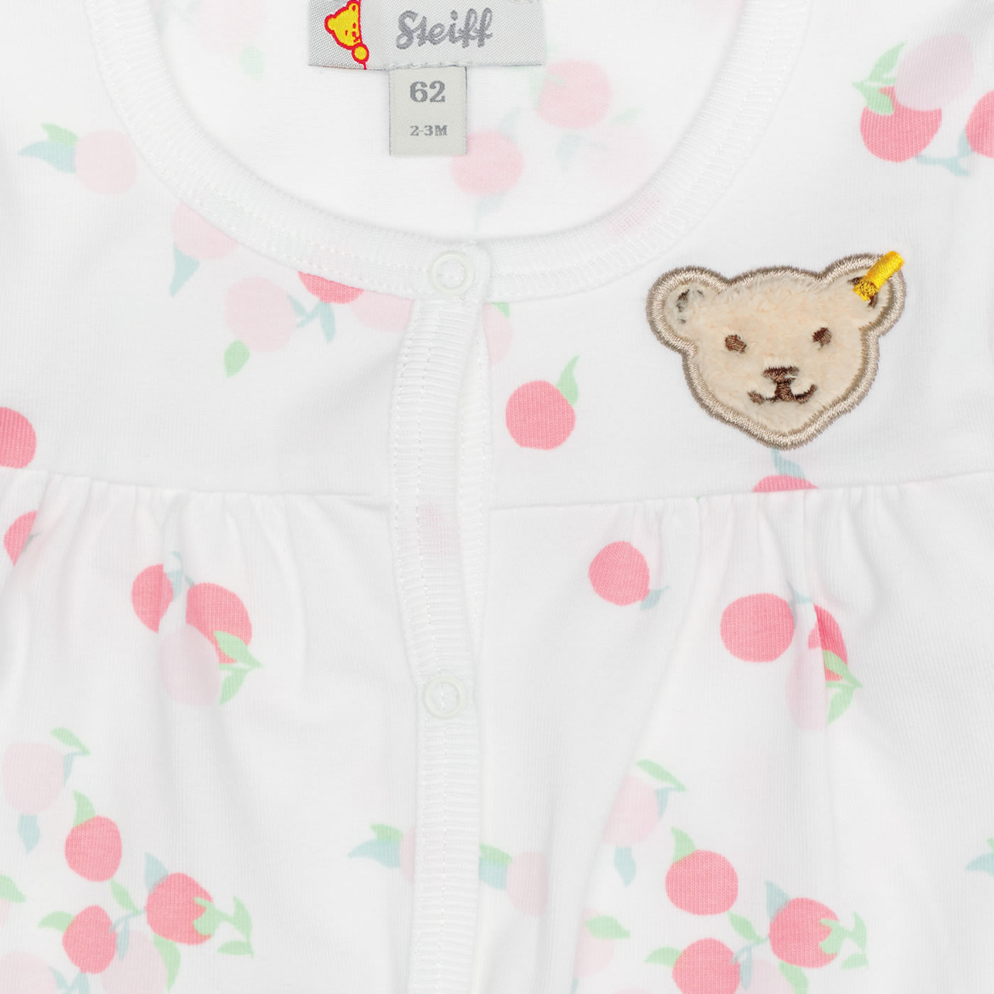 Langarm-Strampler aus der Garden Party-Kollektion von STEIFF für Mädchen. Hübsche Details sind das Zarte Kirschen-Muster und der kleine STEIFF Bär auf der Brust. Die durchgehende Druckknopfleiste erleichtert das An- und Ausziehen.