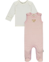 Steiff Strampler u. Shirt Velour BABY ORGANIC JUST DOTS silver pink