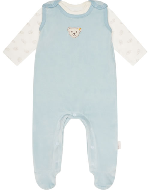 Steiff Strampler u. Shirt Velour BASIC BABY WELLNESS cel. blue