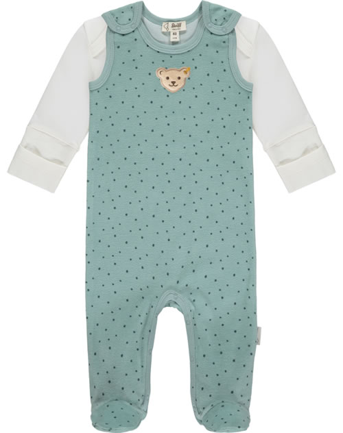Steiff Strampler und Shirt Velour BABY ORGANIC JUST DOTS tourmaline
