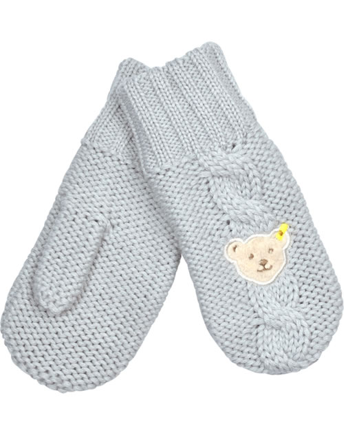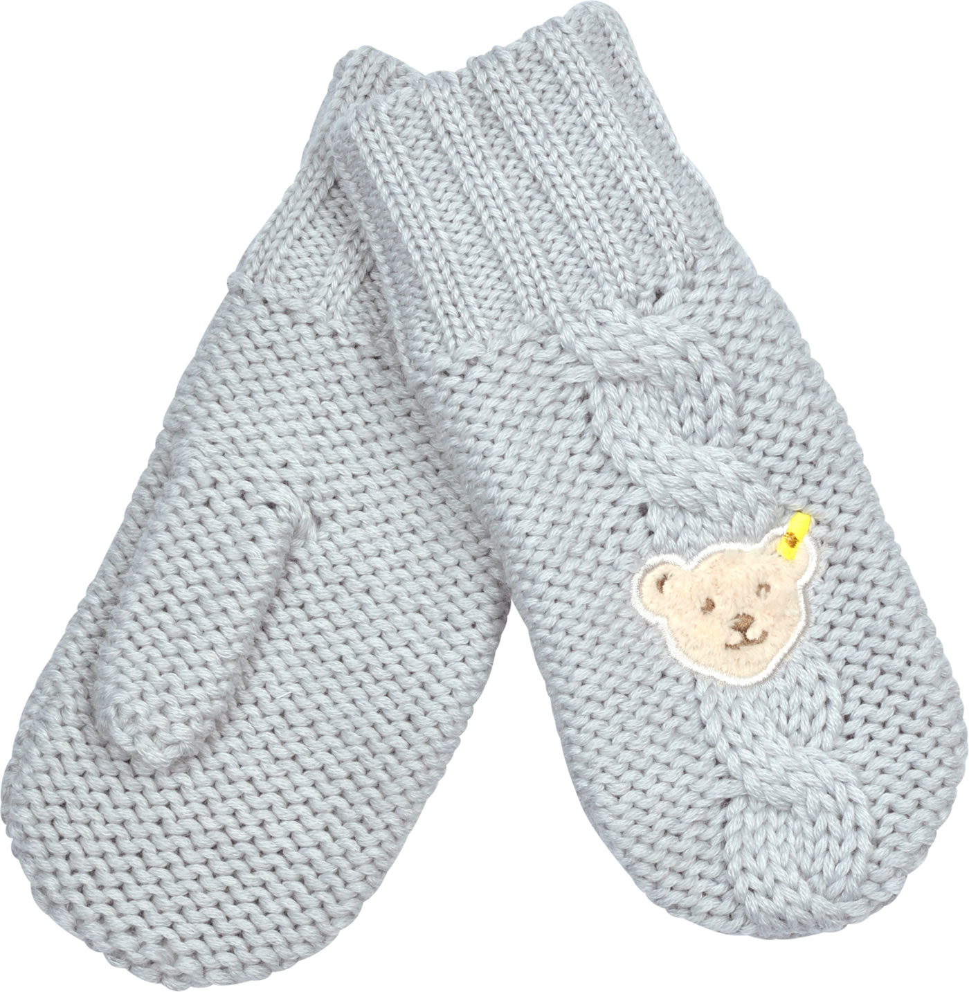 Warme Strick-Handschuhe mit Zopfmuster aus der BLUE STRIPE Kollektion von STEIFF. Der Bär ziert jeweils den Handrücken.