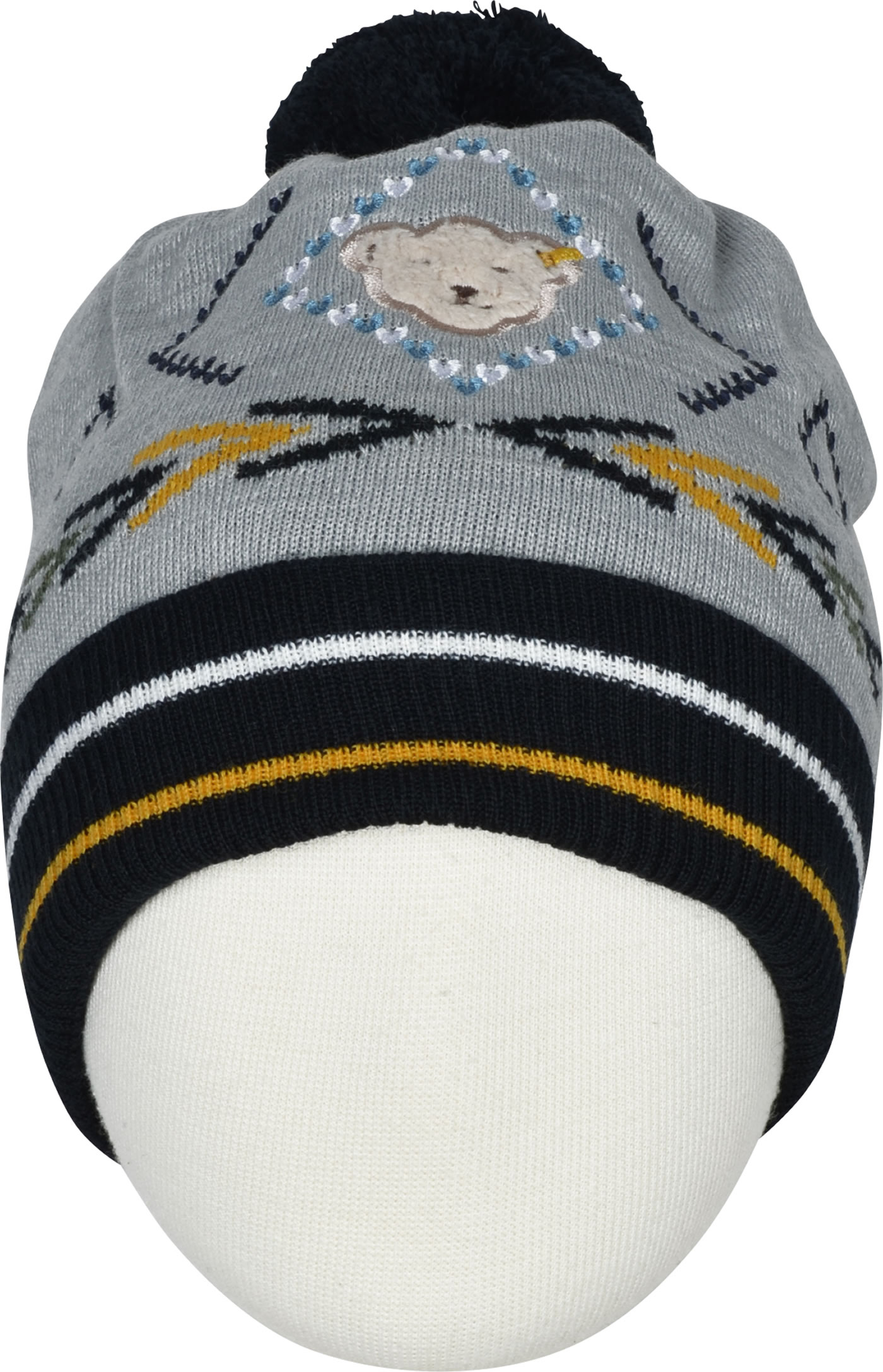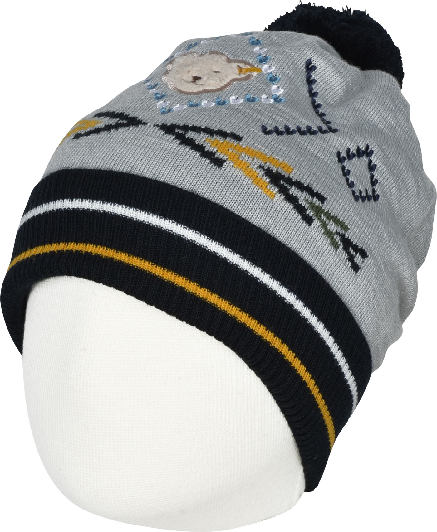 Steiff Strick-Mütze m. Bommel INDI BEAR Mini Boys soft grey melange