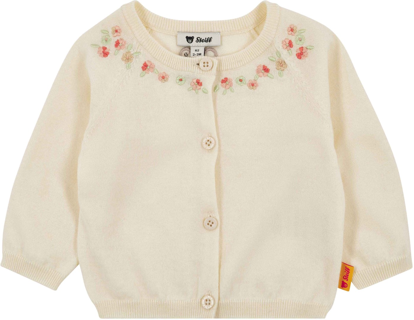 Steiff Strickjacke aus Baumwolle und Kaschmir mit Blumenstickerei - Buttercream Melange