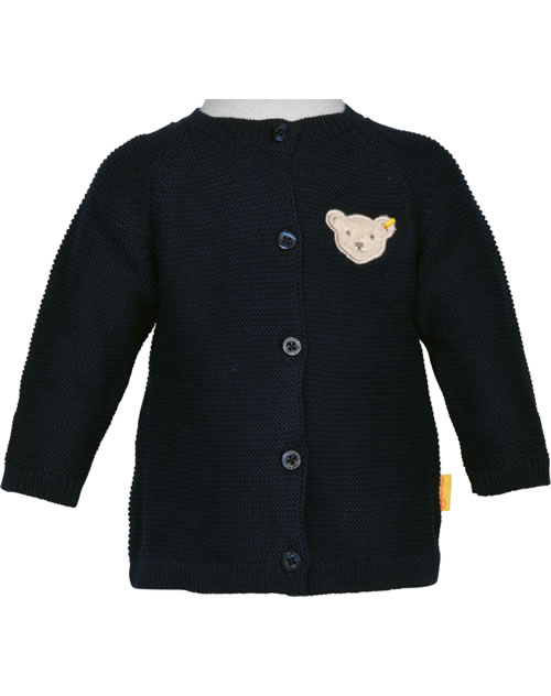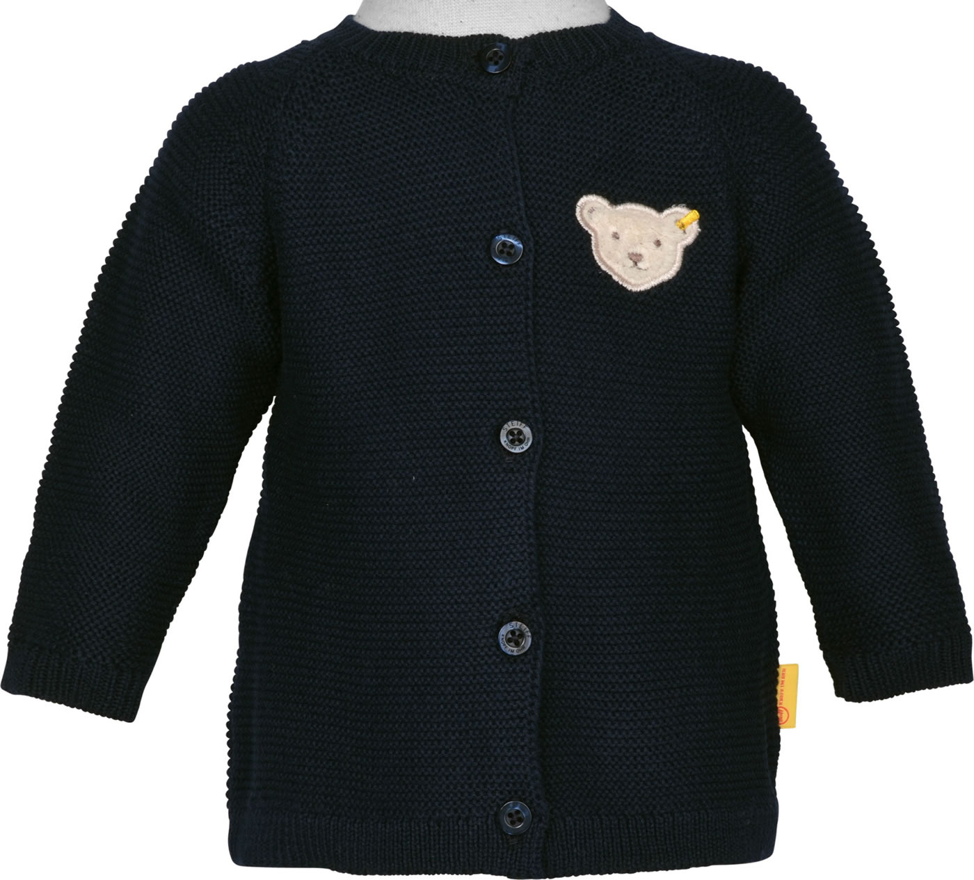 Schöne Strickjacke in dunkelblau für Mädchen aus der aktuellen Bear in my heart-Kollektion von STEIFF. Das weiche Material sorgt für hohen Tragekomfort. Der klassische Schnitt und die zeitlose Farbe lassen sich immer wieder neu kombinieren. Der kleine STEIFF Bär befindet sich auf der Vorderseite.