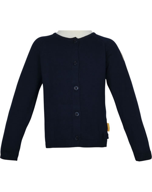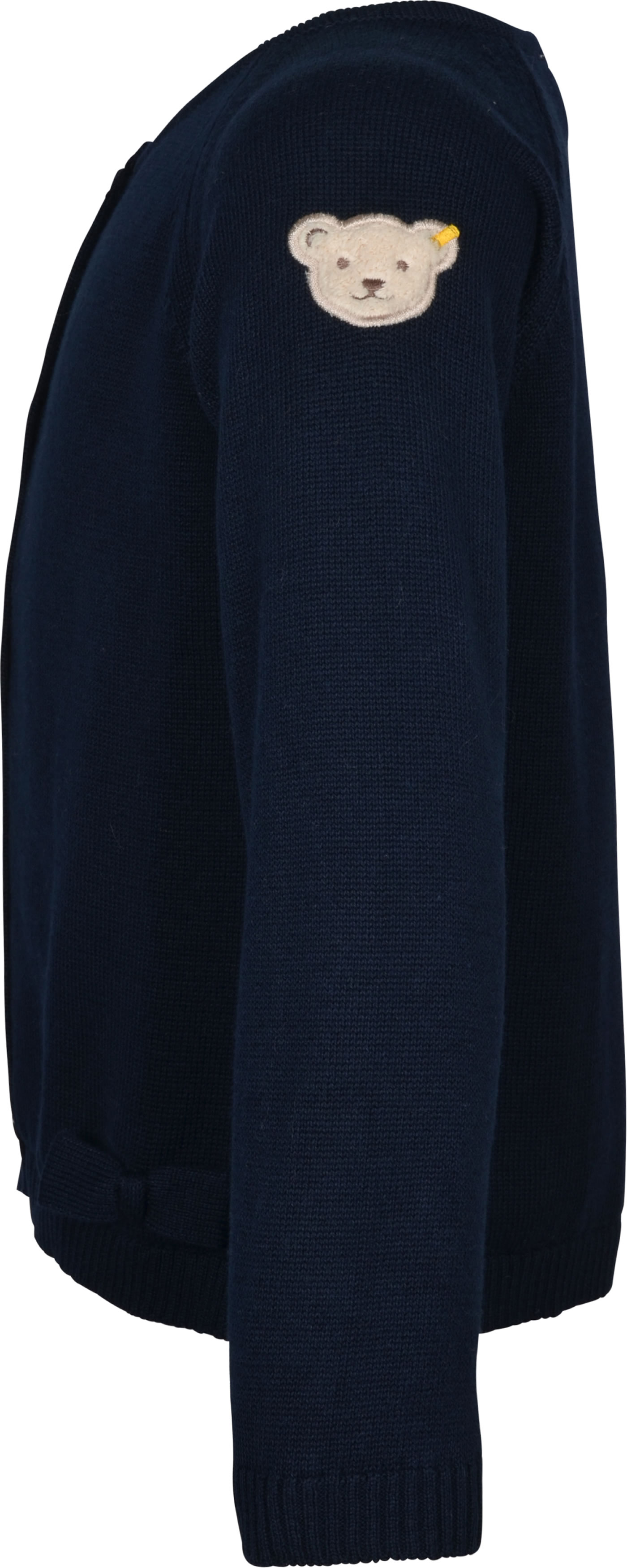 Schöne Strickjacke für Mädchen aus der aktuellen Heartbeat-Kollektion von STEIFF. Das weiche Material sorgt für hohen Tragekomfort. Die Strickjacke wird mit einer farblich passenden Kopfleiste geschlossen. Eine feine Schleife ziert den unteren Saum. Der kleine STEIFF Bärenkopf befindet sich auf dem linken Ärmel.