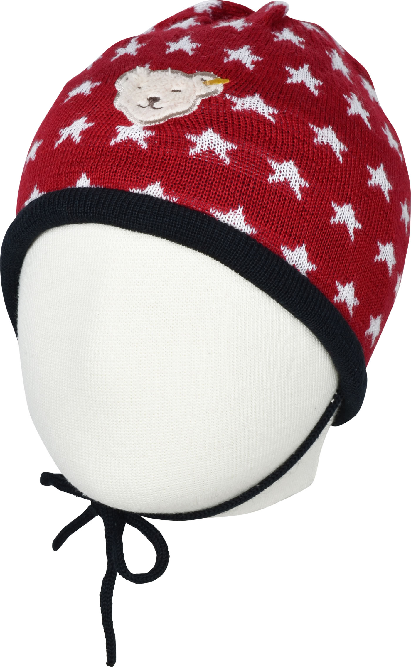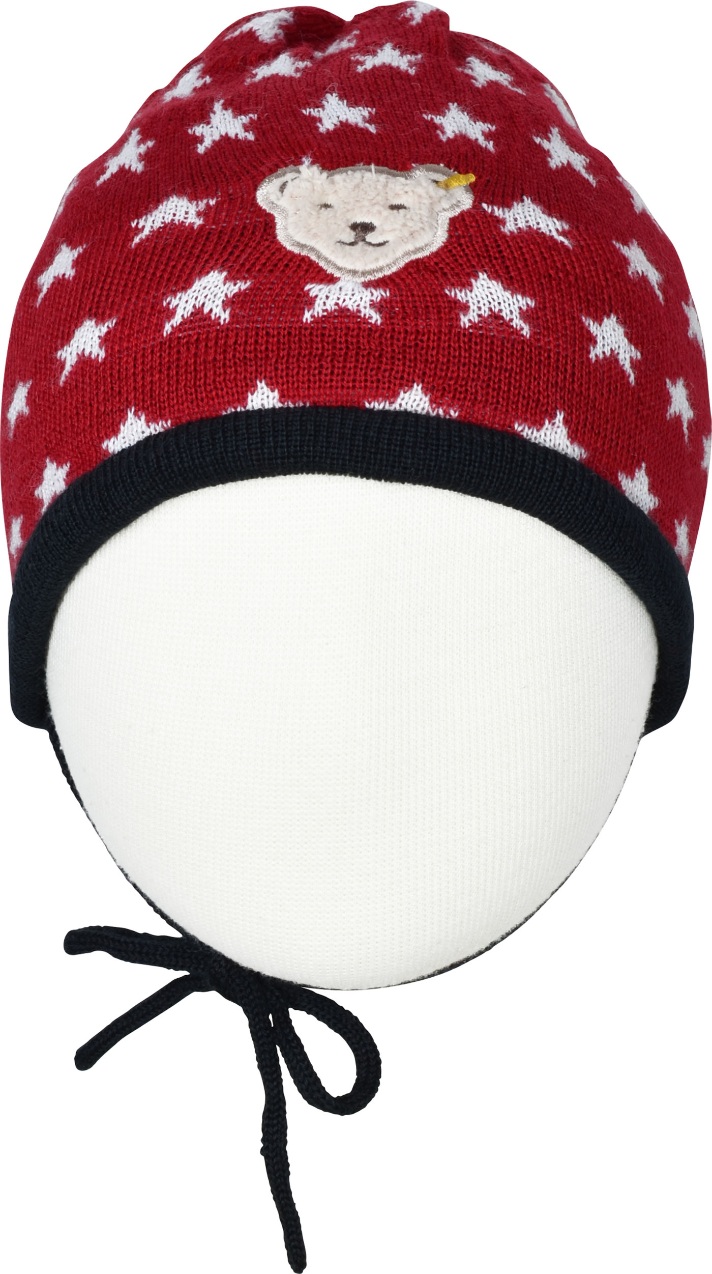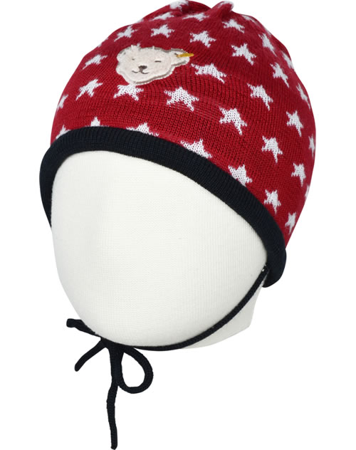 Steiff Strickmütze m.Bindeband BEAR TO SCHOOL tango red