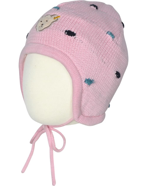 Strickmütze mit bunten Punkten von STEIFF aus der Sweet Heart Kollektion für Mädchen. Die Vorderseite ziert der kleine STEIFF Bär. Die Mütze ist mit weichem Jersey gefüttert.