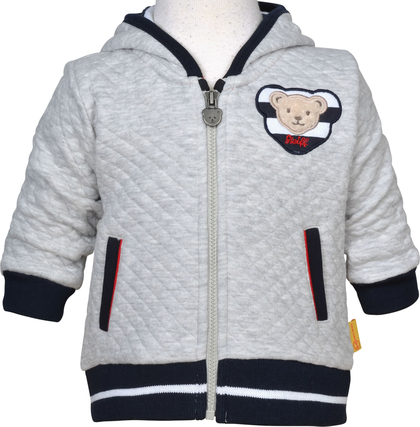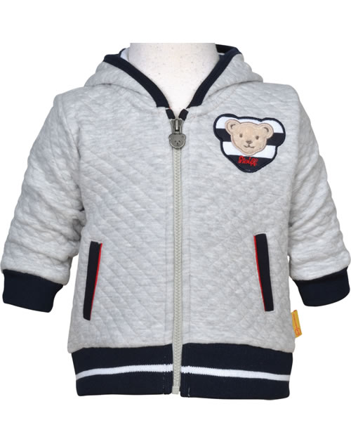 Steiff Sweat-Jacke m. Ohren-Kapuze BEAR TO SCHOOL soft grey melange