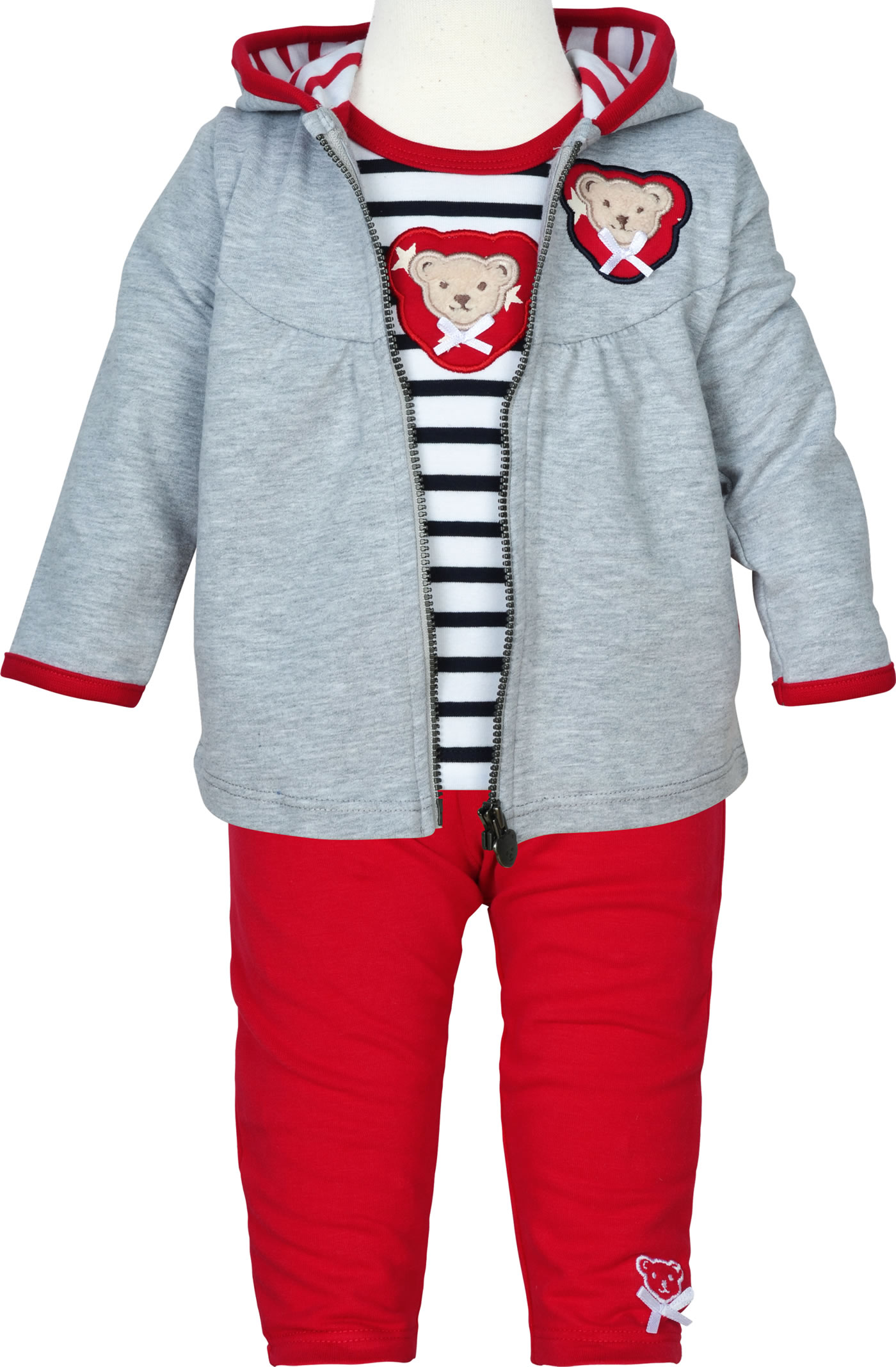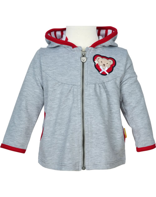 Steiff Sweat-Jacke m. Ohren-Kapuze BEAR TO SCHOOL soft grey melange