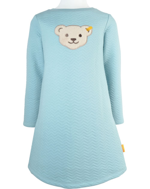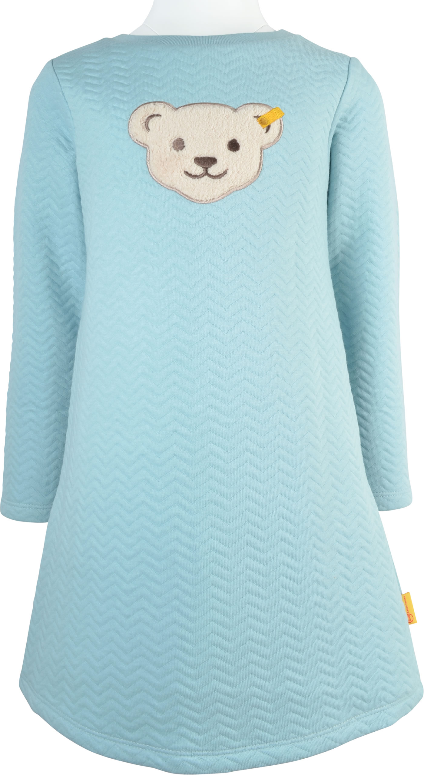 Schönes und bequemes Sweat-Kleid für Mädchen aus der Bird's Twittering Kollektion von STEIFF. Auf der Vorderseite des Kleides befindet sich der STEIFF Bär. Das Kleid ist in leichter A-Linie geschnitten und lässt sich prima mit Jeans, Leggings oder Strumpfhose kombinieren. Ein schönes Detail ist das Wabenmuster.