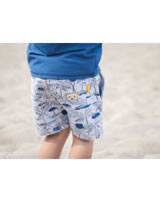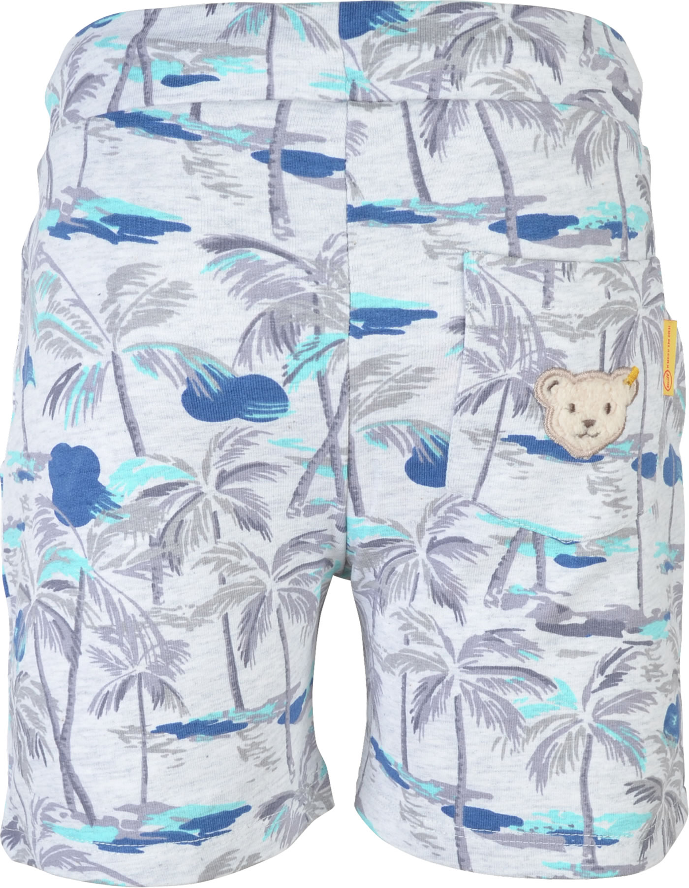 Hübsche Sweatshorts im Dschungelprint für Jungen von STEIFF aus der Happy Hippo-Kollektion. Die Hose ist sehr bequem und mit Hilfe des Tunnelzugs lässt sich die Weite leicht verstellen. Zwei Taschen auf der Vordeseite bieten Platz für Kleinigkeiten. Schöne Details sind die Tasche und der STEIFF Bär auf der Rückseite.