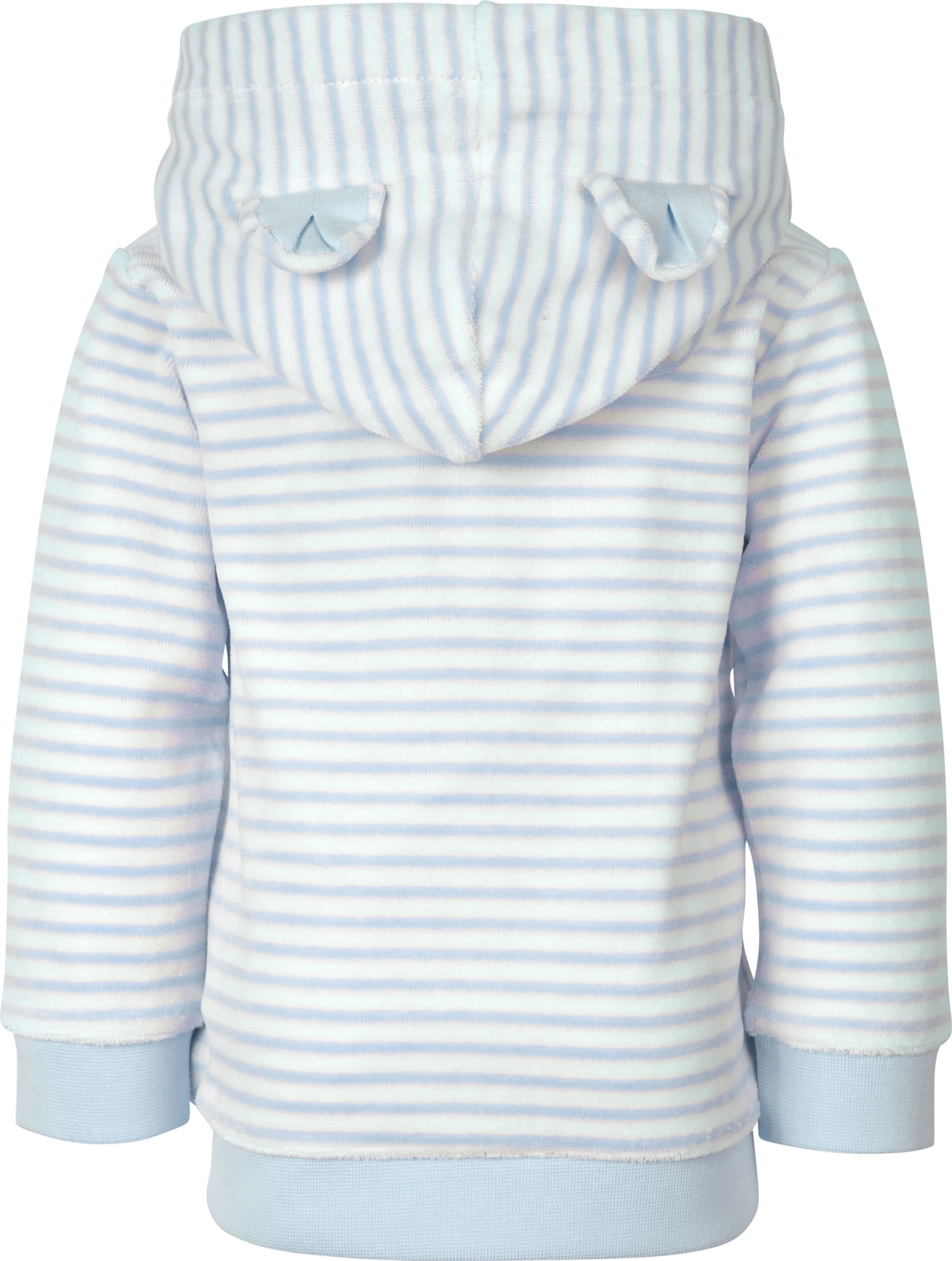 Gestreifte Sweatjacke mit Kapuze aus weichem Nicki-Material aus der Baby Wellness-Kollektion von STEIFF. Der STEIFF Bär ziert die Vorderseite des Sweatshirts. Verschlossen wird die Jacke mit einem Reißverschluss. Die Kapuze mit den niedlichen Bärenohren ist mit weichem Jersey gefüttert.