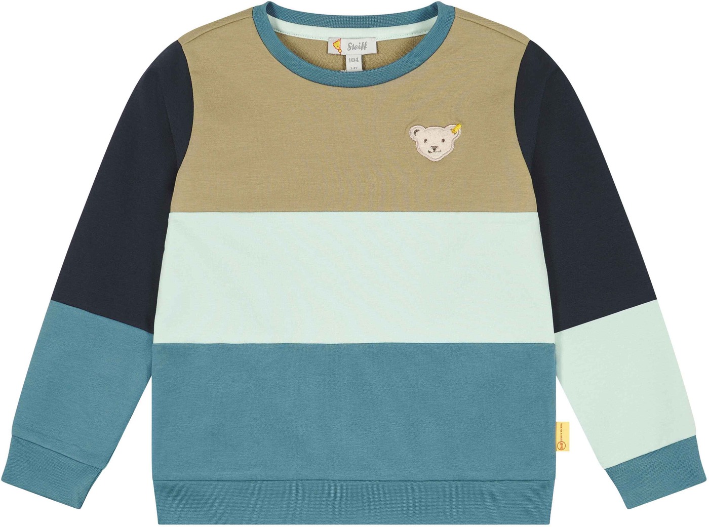 Tolles Sweat-Shirt mit Blockstreifen aus der Aligator Island-Kollektion von STEIFF für Jungen. Ein Hingucker ist der kleine STEIFF-Bär auf der Vorderseite. Die bequemen Rippbündchen sorgen für den perfekten Sitz.