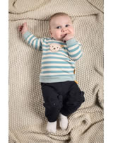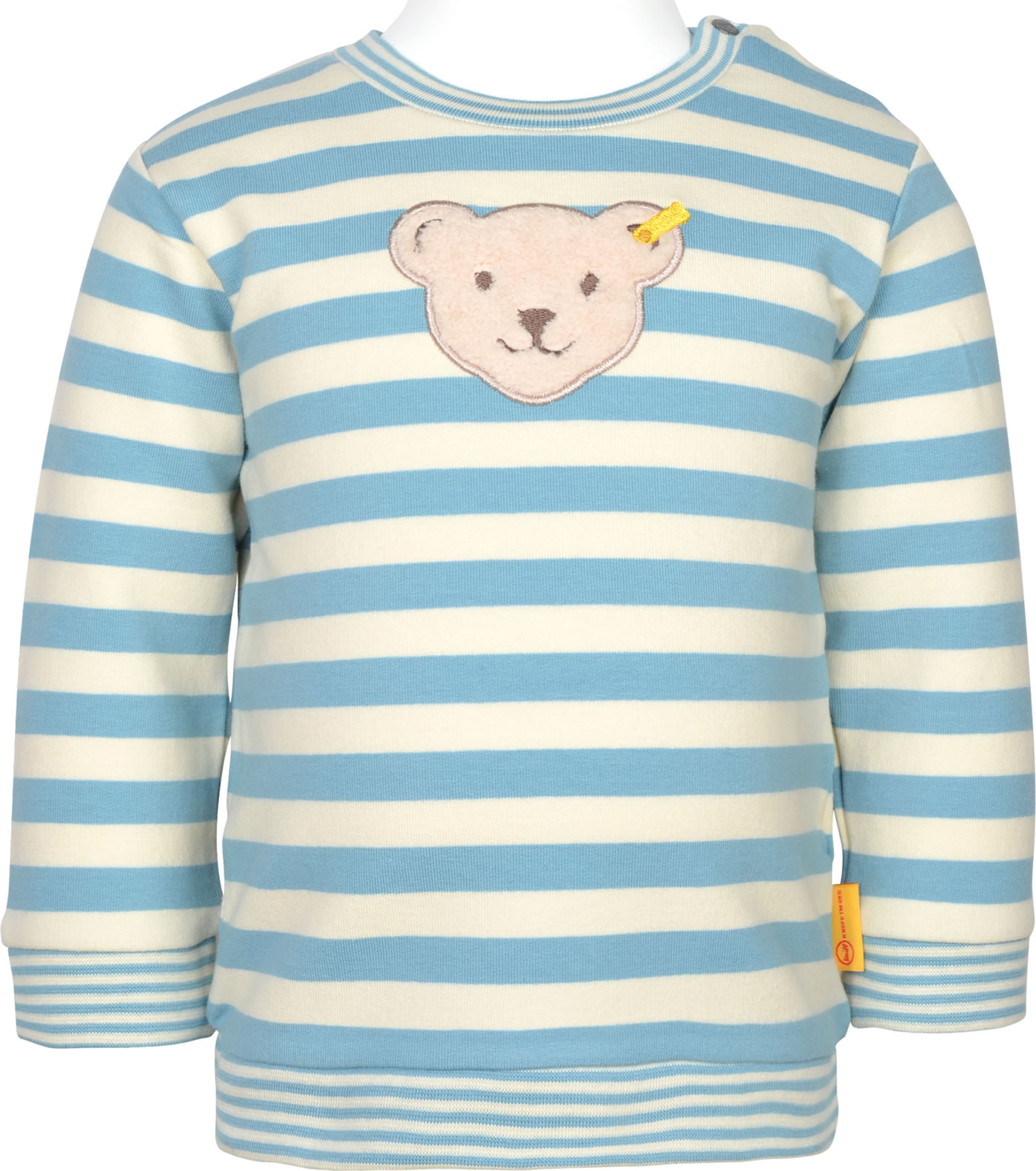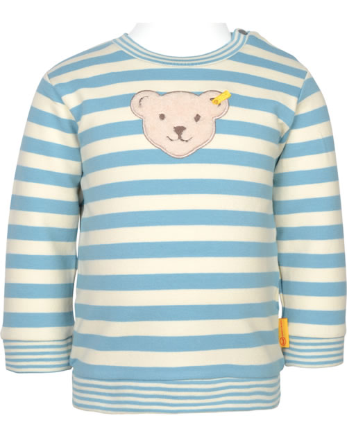Gestreiftes Sweatshirt für Jungen aus der Dragon's Fire-Kollektion von STEIFF. Ein toller Hingucker ist der STEIFF Bär auf der Brust. Der Pullover ist innen weich angeraut und dadurch kuschelig warm für die kühleren Tage. Zwei Druckknöpfe auf der Schulter erleichtern das An- und Ausziehen.