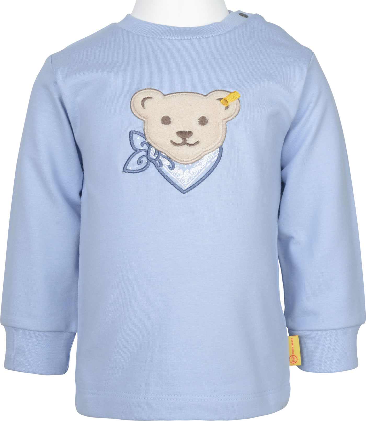 Warmes und bequemes Sweat-Shirt aus der Elephant Ride-Kollektion von STEIFF für Jungen. Der STEIFF Bär mit Halstuch macht dieses Sweatshirt schnell zu einem Lieblingsstück. Zwei Druckknöpfe am Halsausschnitt erleichtern das An-und Ausziehen.