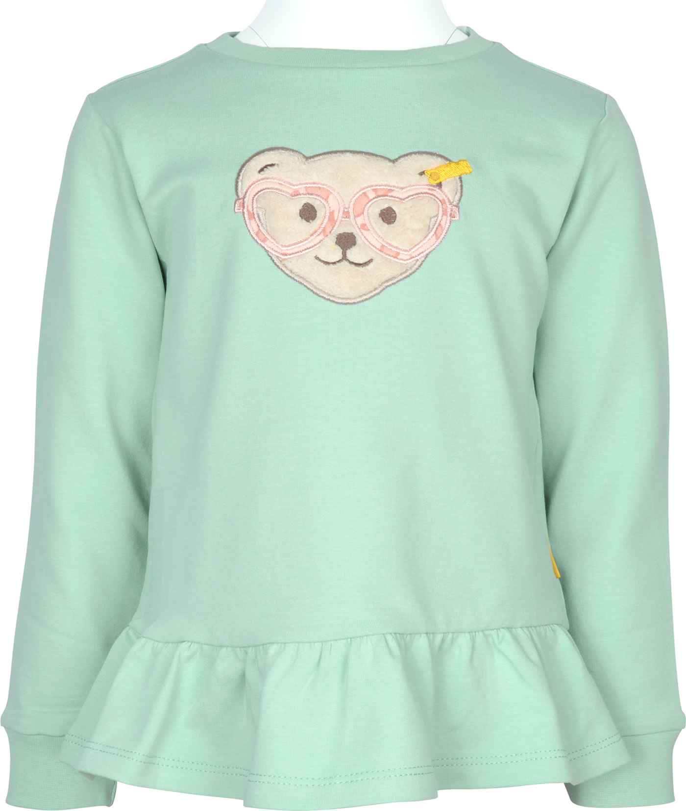 Sweat-Shirt aus der Jungle Feeling-Kollektion von STEIFF für Mädchen. Tolle Details sind der STEIFF Bär mit Herzchen-Brille auf der Vorderseite und die Rüschenkante am Saum.