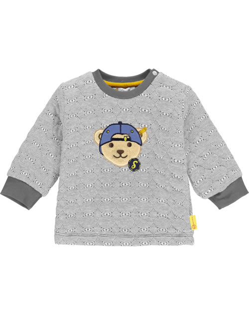 Sweatshirt für Jungen von STEIFF aus der Let's Play!-Kollektion. Das Sweatshirt in Waben-Optik ist besonders weich und anschmiegsam. Zwei Knöpfe auf der Schulter erleichtern das An- und Ausziehen. Besonders schön ist der STEIFF Bär auf der Vorderseite.