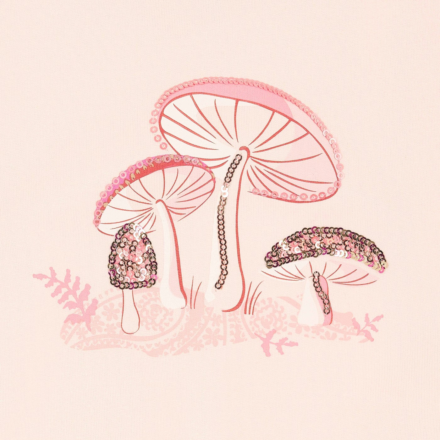 Es hat ein liebevoll gestaltetes Pilz-Motiv mit schillernden Pailetten-Details auf der Vorderseite und begeistert mit wunderschöner Farbe.
