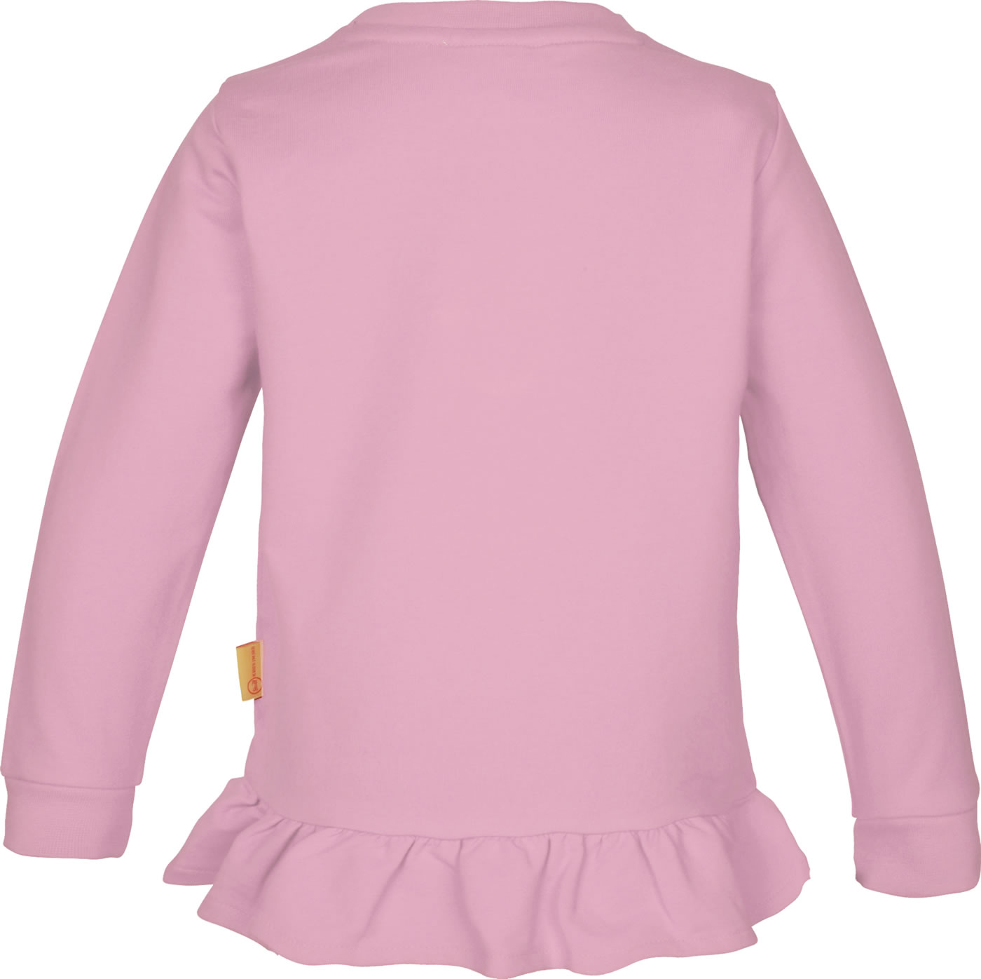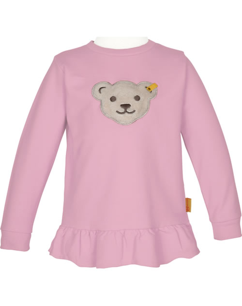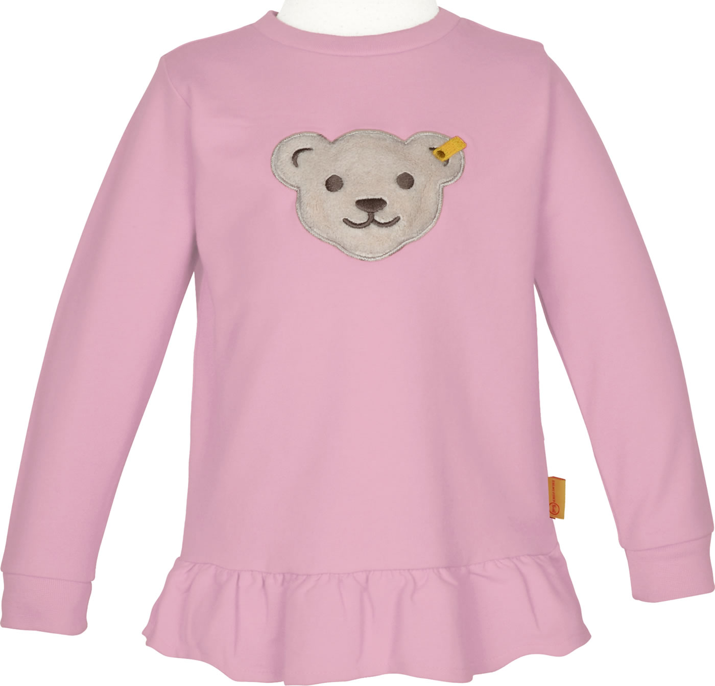 Sweatshirt mit Bären-Quietsche aus der Sweet Heart-Kollektion von STEIFF für Mädchen. Innen ist das Sweat-Shirt weich angeraut und wärmt dadurch auch an kühleren Tagen. Ein besonders schönes Detail ist die Rüschenkante am Saum.