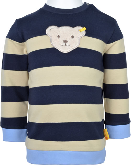 Sweatshirt aus der Pawerful Kollektion von STEIFF für Jungen. Schöne Details sind der STEIFF Bär auf der Vorderseite und die farblich abgestzten Bündchen. Die Innenseite ist kuschelig weich angeraut und Druckknöpfe auf der Schulter erleichtern das An- und Ausziehen.