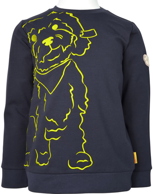 Warmes und bequemes Sweat-Shirt aus der Pawerful-Kollektion von STEIFF für Jungen. Von innen ist das Sweatshirt weich angeraut und dadurch kuschelig warm. Ein toller Hingucker ist der gestickte Hund mit kleinem Halstuch auf der Vorderseite. Der STEIFF Bär ziert den linken Ärmel.