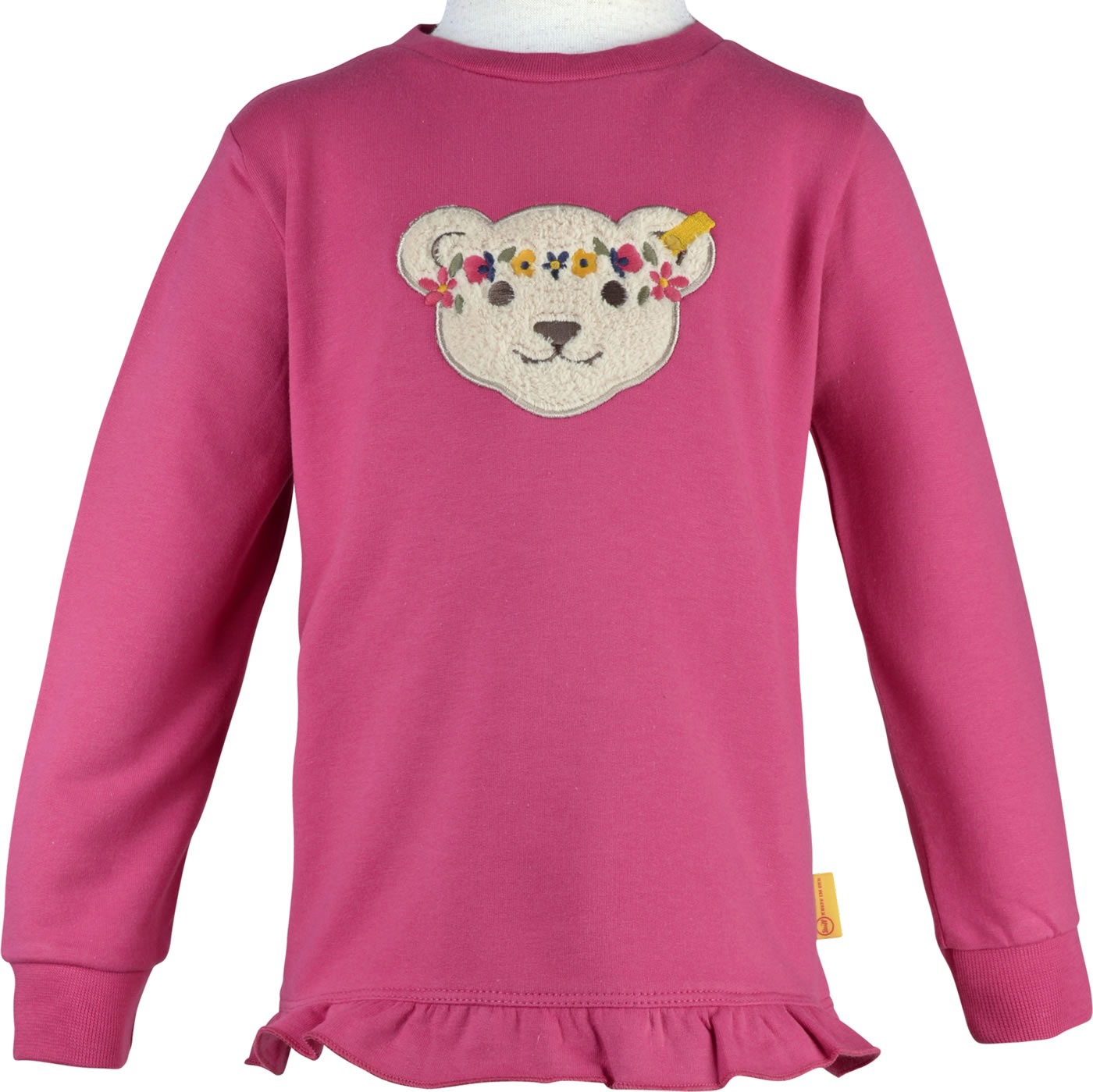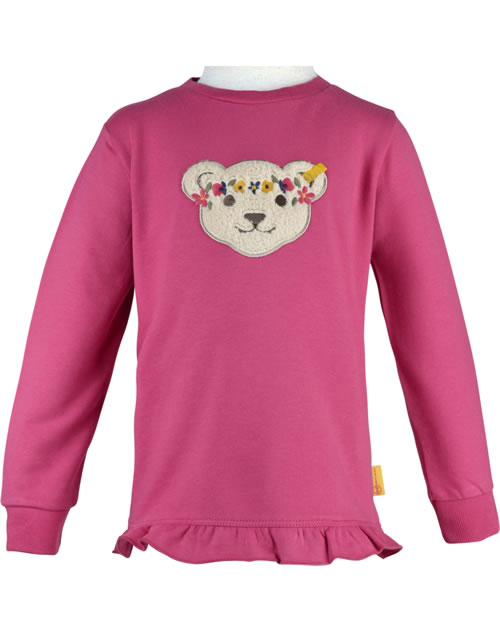 Sweatshirt aus der Ponyful-Kollektion von STEIFF für Mädchen. Besonders schön sind die Rüschen am Saum und der große STEIFFBär mit Blumenkranz auf der Vorderseite. Innen ist das Sweatshirt weich angeraut und dadurch kuschelig warm.