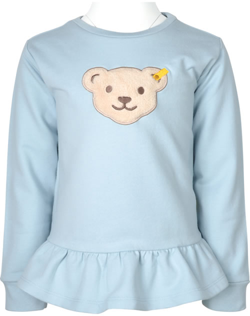 Sweat-Shirt mit Quietsche aus der Bird's Twittering-Kollektion von STEIFF für Mädchen. Tolle Details sind die STEIFF Bär-Applikation mit Quietsche auf der Vorderseite und die Rüschenkante am Saum. Die Innenseite ist kuschelig weich angeraut.