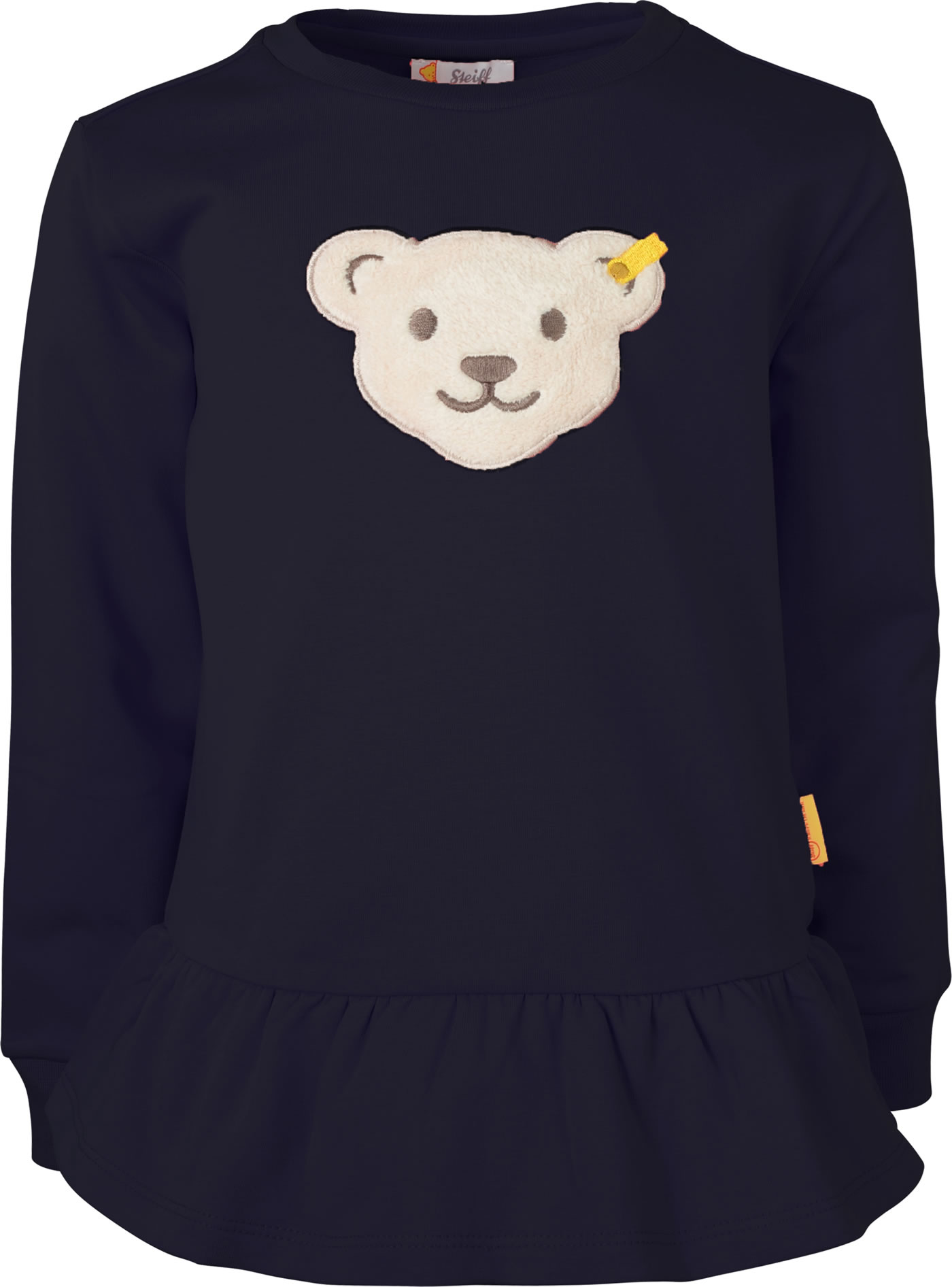 Sweat-Shirt mit Quietsche aus der Classic-Kollektion von STEIFF für Mädchen. Tolle Details sind die STEIFF Bär-Applikation mit Quietsche auf der Vorderseite und die Rüschenkante am Saum. Die Innenseite ist kuschelig weich angeraut.