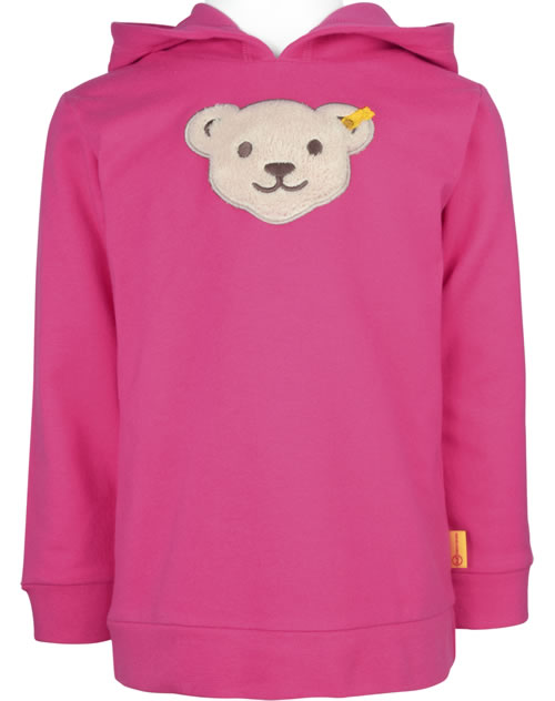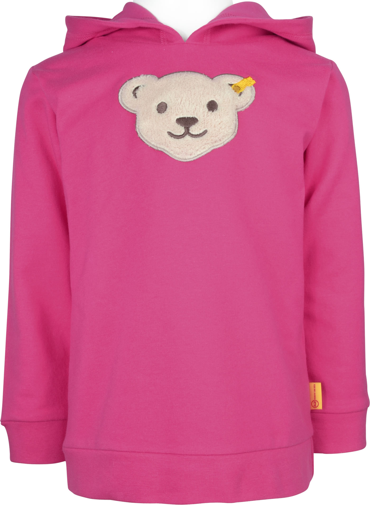 Sweatshirt mit Kapuze für Mädchen aus der Year of the Teddy bear-Kollektion von STEIFF. Ein toller Hingucker ist der STEIFF Bär auf der Brust mit Quietsche. Die Kapuze ist mit weichem Baumwoll-Jersey gefüttert und der Pullover ist innen weich angeraut und dadurch kuschelig für die kühleren Tage.
