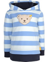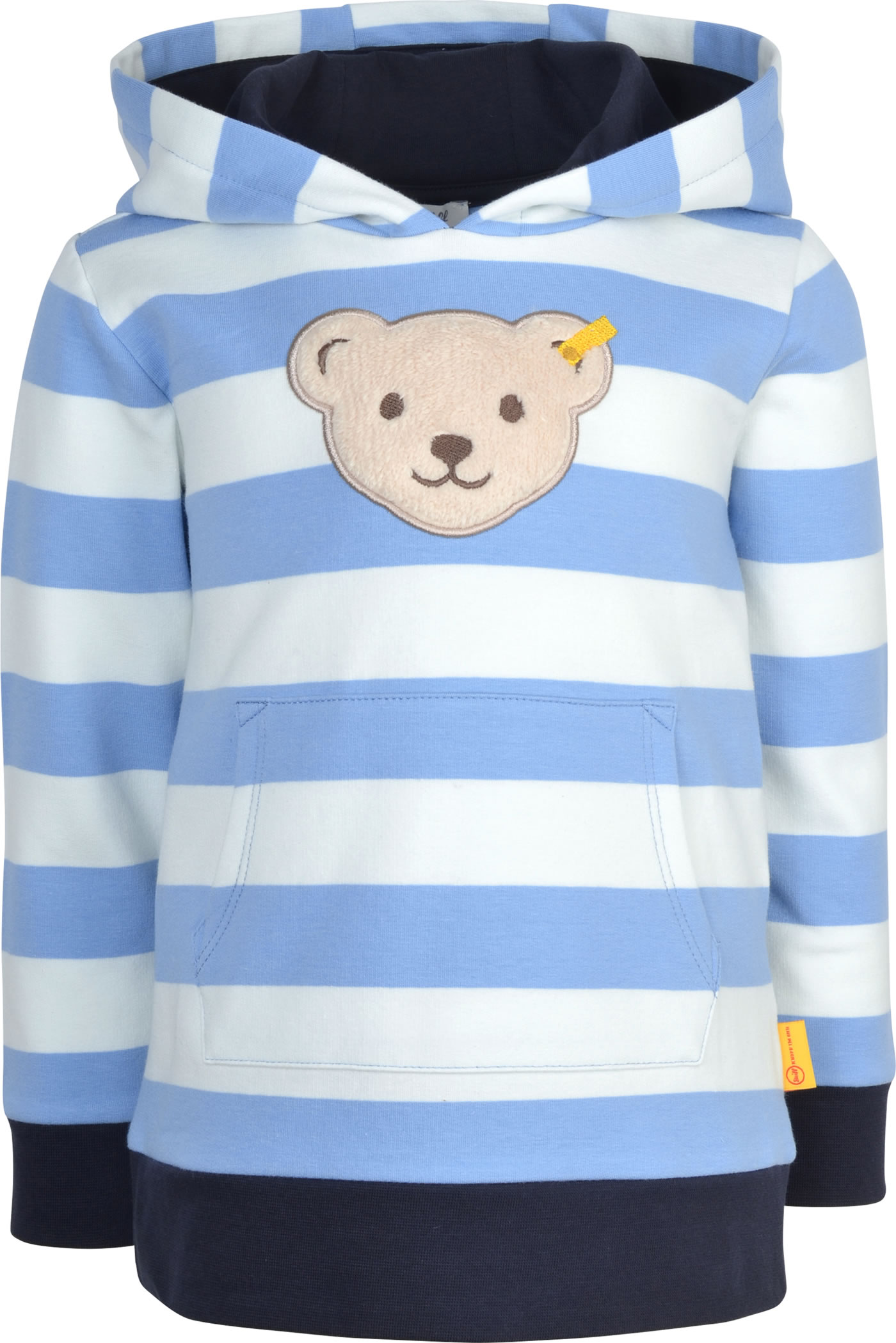 Gestreiftes Kapuzen-Sweatshirt aus der Pawerful-Kollektion von STEIFF für Jungen. Von innen ist das Sweatshirt weich angeraut und dadurch besonders anschmiegsam. Ein Hingucker ist der STEIFF Bär mit Quitsche auf der Vorderseite. Die Bauchtasche bietet Platz für Kleinigkeiten. Die Kapuze hat ein dunkelblaues jerseyfutter.