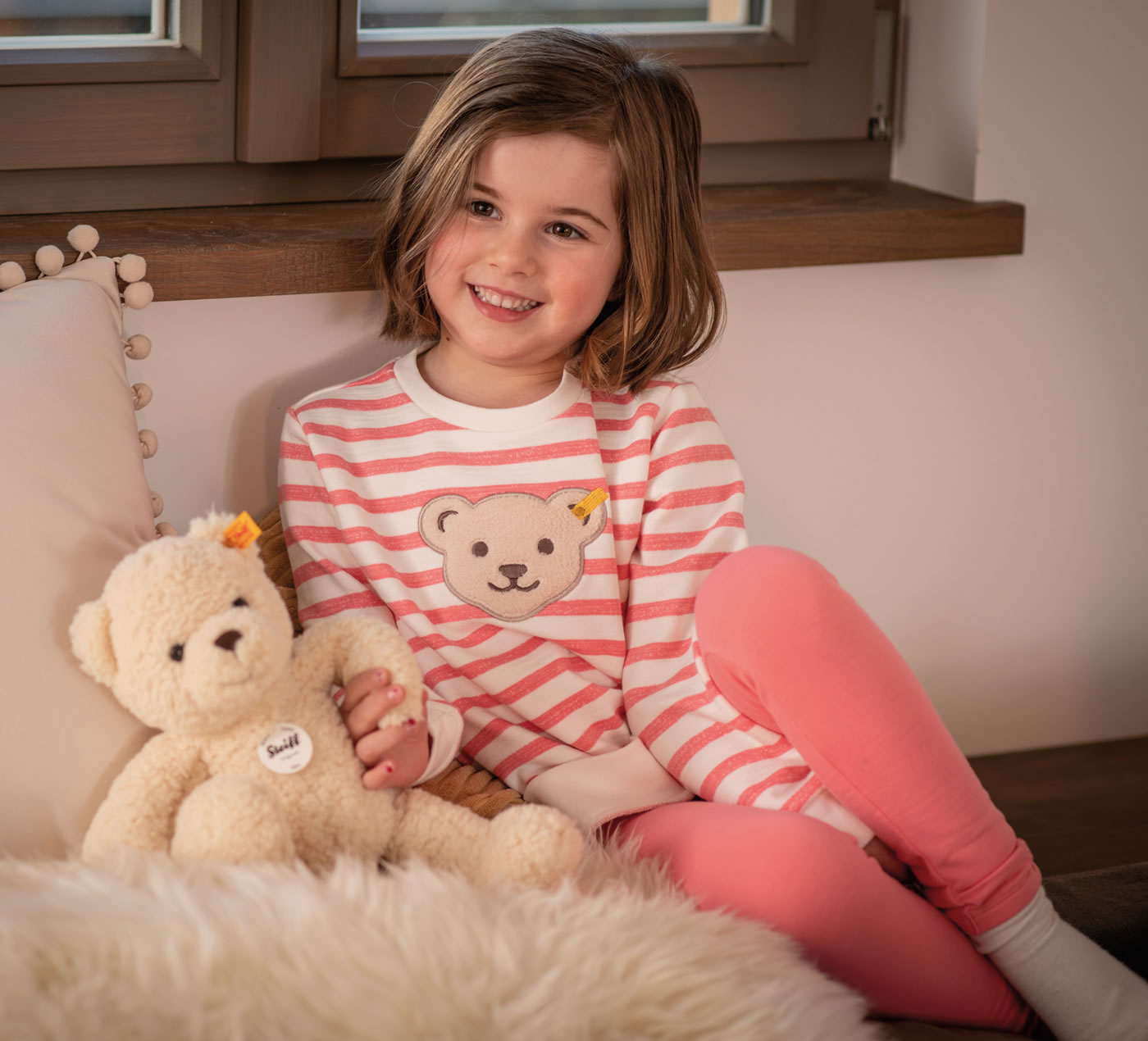 Sweat-Shirt aus der Swan Lake-Kollektion von STEIFF für Mädchen. Tolle Details sind die STEIFF Bär-Applikation auf der Vorderseite und das hübsche Streifen-Muster. Die Innenseite ist kuschelig weich angeraut.