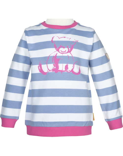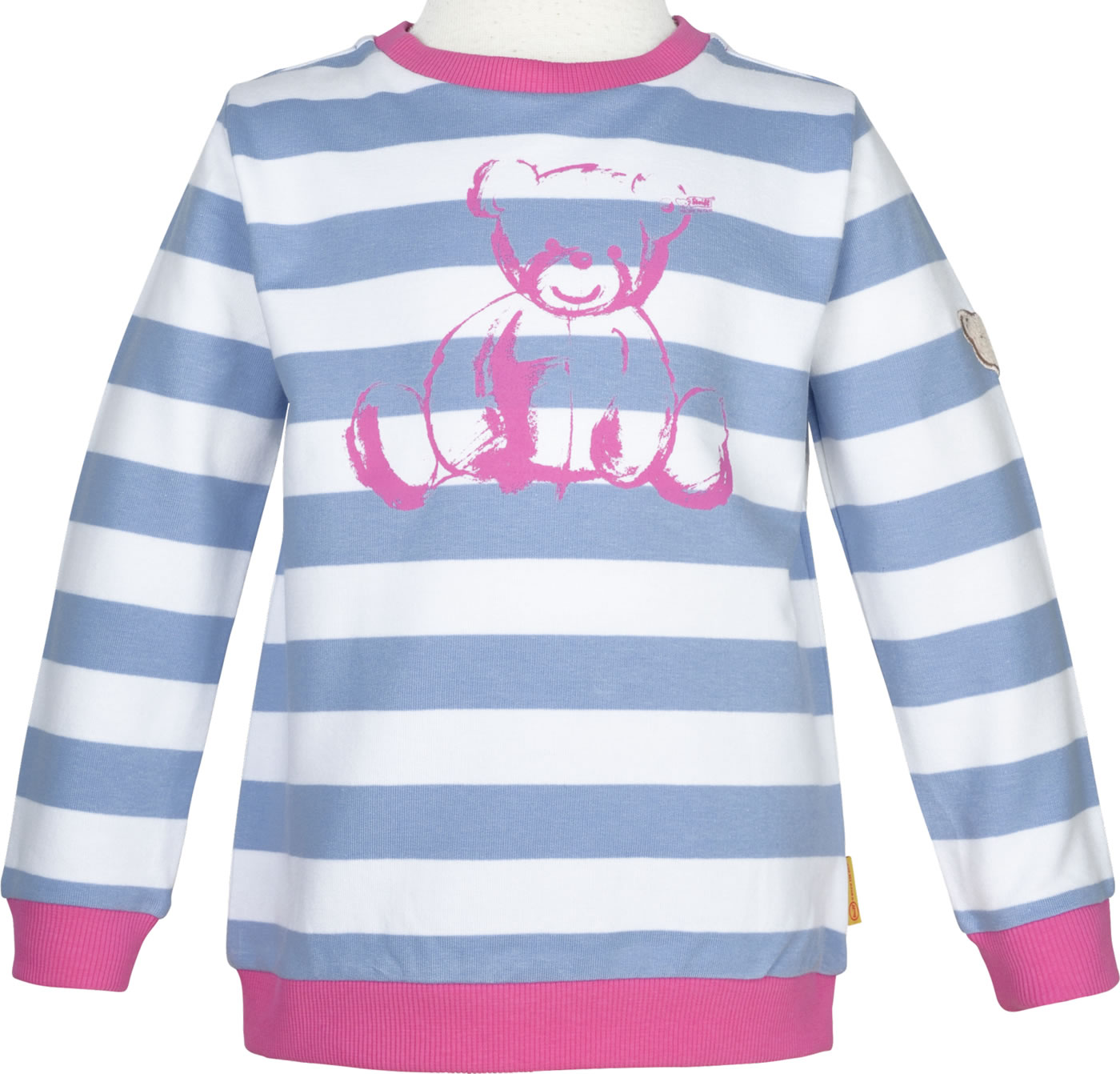 Gestreiftes Sweatshirt aus der Sweet Cherry Kollektion von STEIFF für Mädchen. Der STEIFF Bär befindet sich auf dem linken Ärmel und als Print auf der Vorderseite. Schöne Details sind die pink abgesetzten Bündchen. Das Sweatshirt ist aus weichem Stoff und eignet sich besonders für die kühleren Tage.