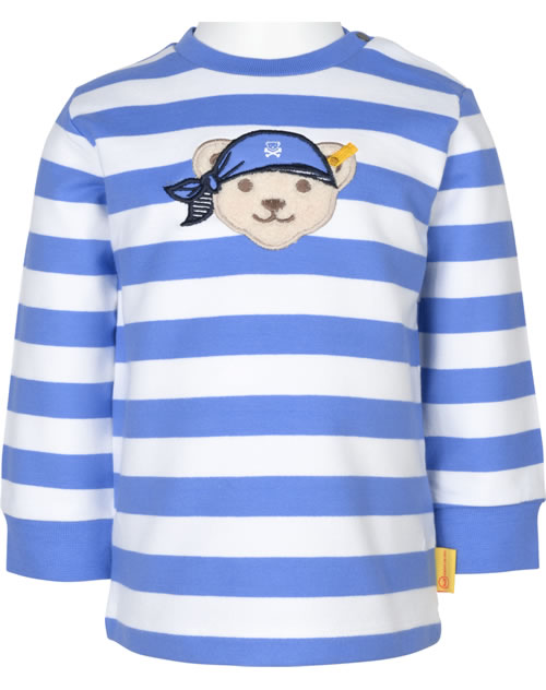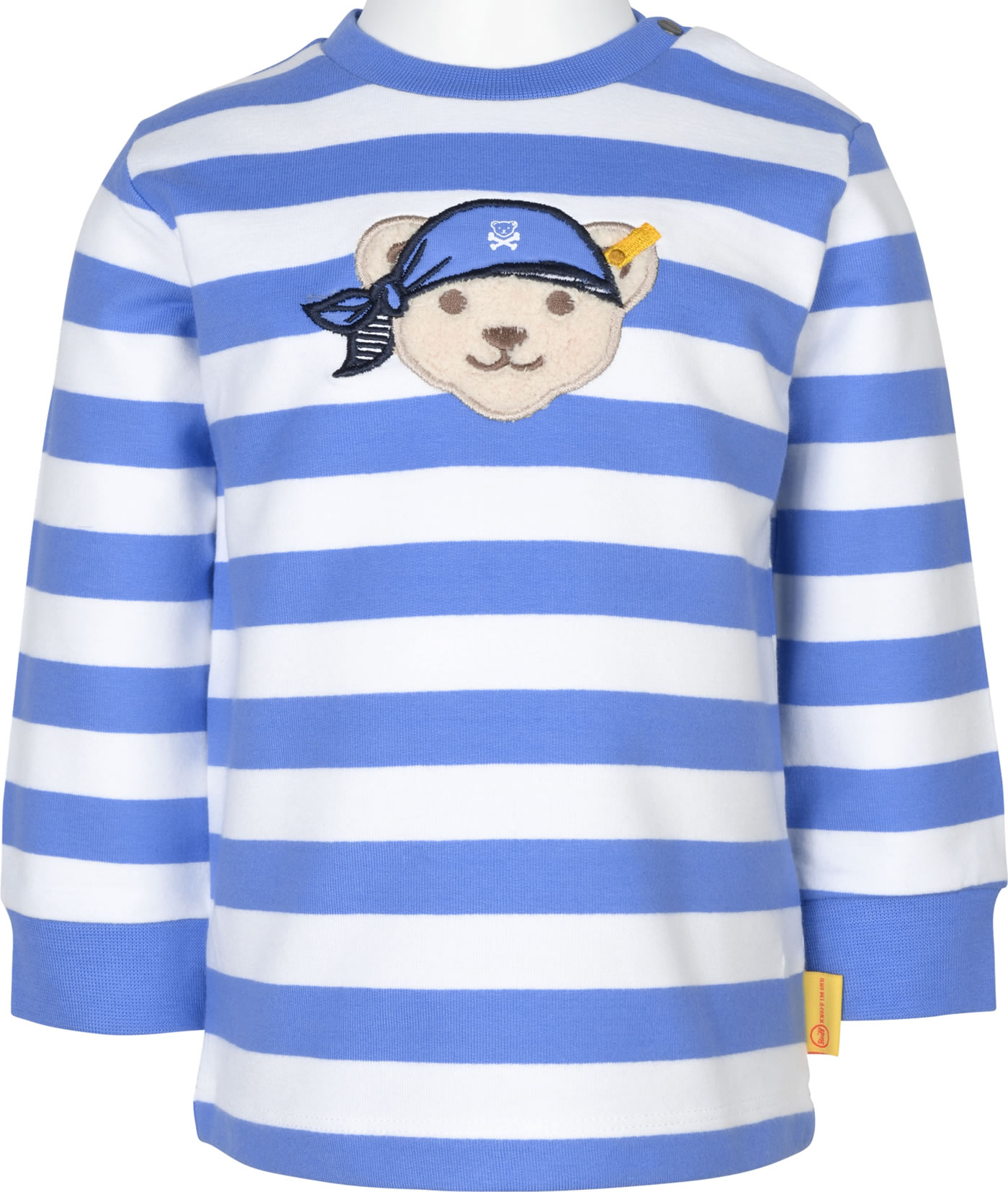 Gestreiftes Sweat-Shirt aus der Under the Surface-Kollektion von STEIFF für Jungen. Der STEIFF Bär mit Piratenkopftuch macht dieses Sweatshirt schnell zu einem Lieblingsstück. Zwei Druckknöpfe am Halsausschnitt erleichtern das An-und Ausziehen.