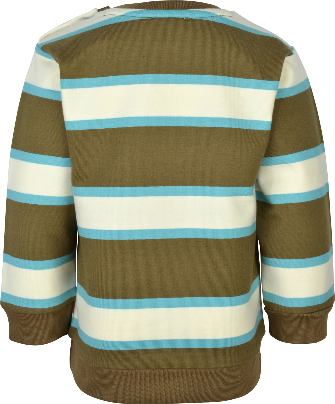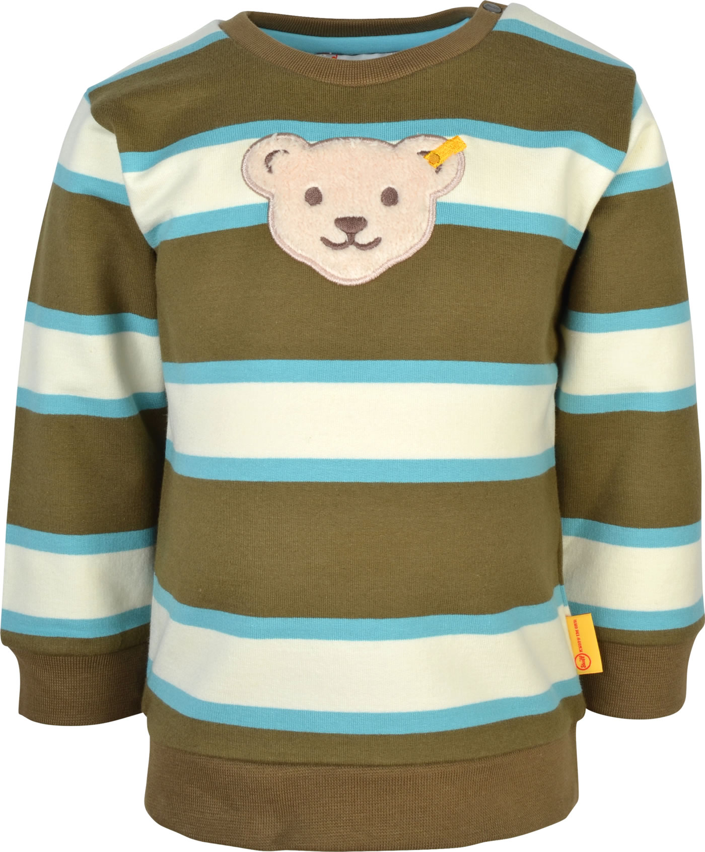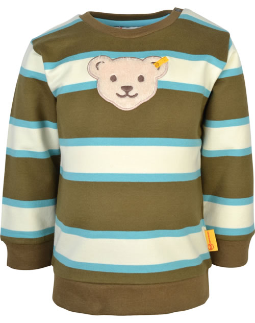 Gestreiftes Sweatshirt für Jungen aus der Wolfs Land-Kollektion von STEIFF. Ein toller Hingucker ist der STEIFF Bär auf der Brust. Der Pullover ist innen weich angeraut und dadurch kuschelig warm für die kühleren Tage. Zwei Druckknöpfe auf der Schulter erleichtern das An- und Ausziehen.