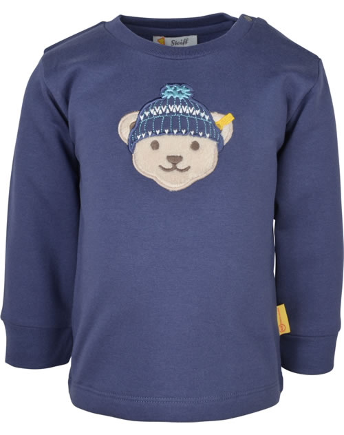 Sweatshirt für Jungen aus der Wolfls Land-Kollektion von STEIFF. Ein toller Hingucker ist der STEIFF Bär mit Mütze auf der Brust. Der Pullover ist innen weich angeraut und dadurch kuschelig warm für die kühleren Tage. Zwei Druckknöpfe auf der Schulter erleichtern das An- und Ausziehen.