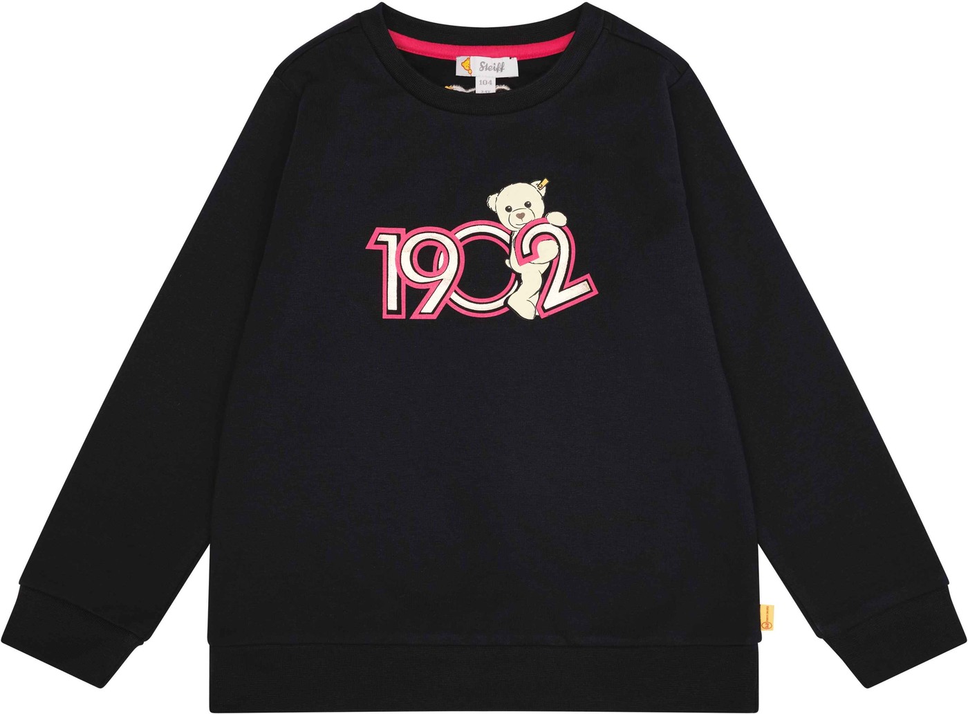 Sweat-Shirt aus der Year of the Teddy bear-Kollektion von STEIFF für Mädchen. Innen ist das Sweatshirt kuschelig weich angeraut. Der STEIFF Bär ziert die Rückseite. Der Print mit dem STEIFF Bären und der Jahreszahl 1902 erinnert an das Jahr, in dem der erste STEIFF Bär entworfen wurde.