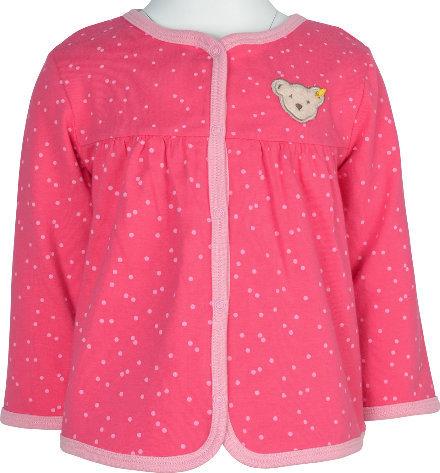 Doppellagige Sweatshirt-Jacke aus der BEST FRIENDS-Kollektion von STEIFF für Mädchen. Von innen ist die Sweatshirtjacke mit rosa gepunktetem Jerseyfutter ausgestattet. Sie läßt sich mit Druckknöpfe verschließen. Ein tolles Detail ist die STEIFF Bären Applikation auf der Vorderseite.