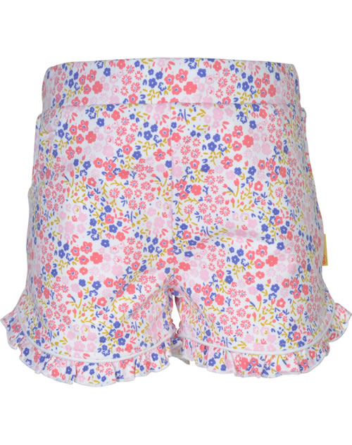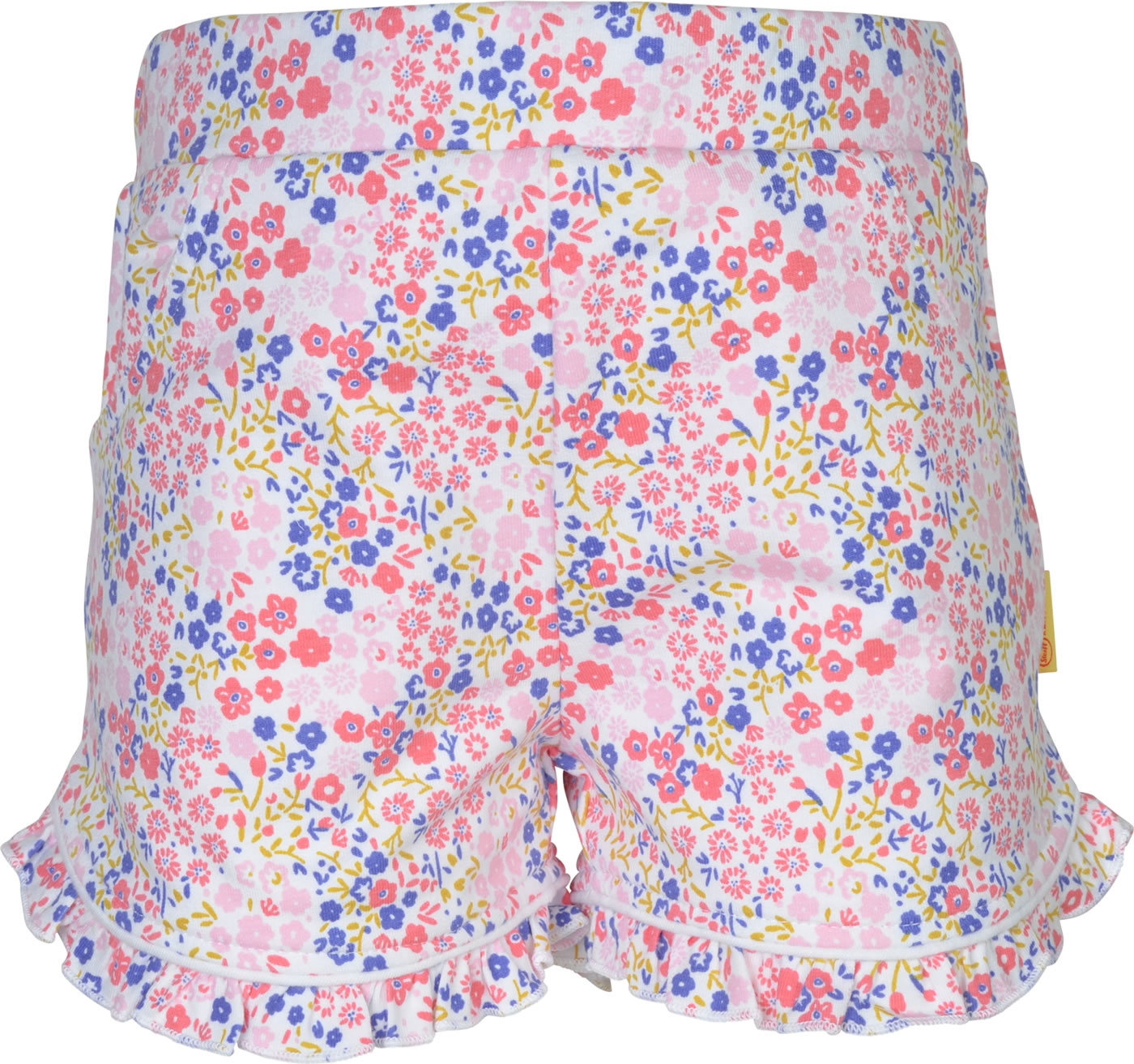 Tolle Sweatshorts für Mädchen von STEIFF aus der Serendipity-Kollektion. Die Shorts hat einen schönen Blümchendruck und die Beinenden sind mit Rüschen verziert. Dank des breiten Gummizugbundes mit Bindeband sitzt die Hose sehr bequem. Zwei Eingrifftaschen vorn bieten Platz für Kleinigkeiten.Der Bärenkopf ziert die Rückseite. Das angenehme Material bietet einen hohen Tragekomfort.