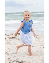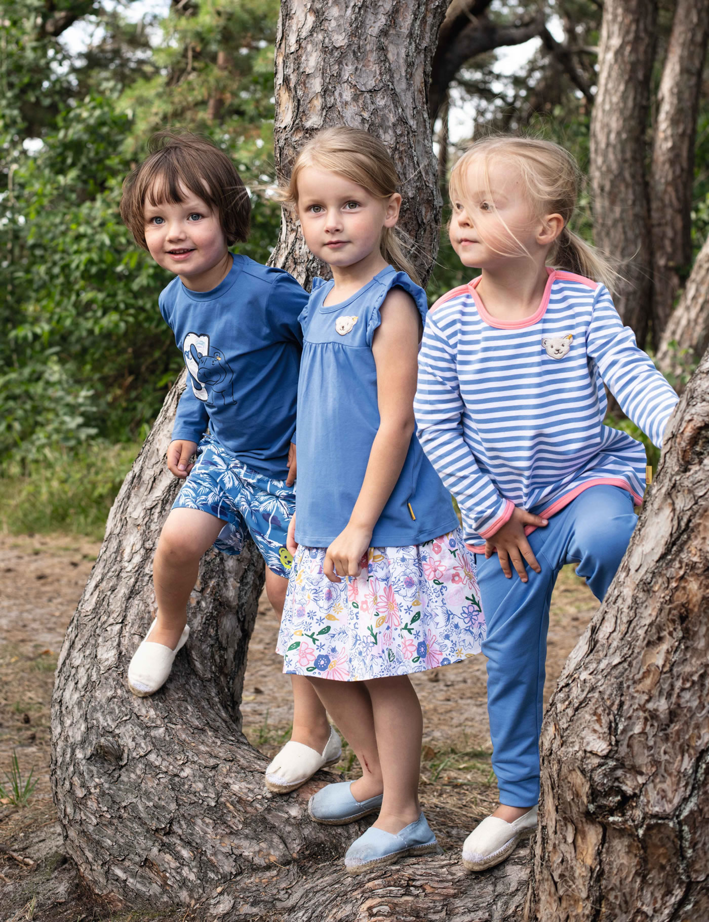 Locker geschnittenes Shirt mit Flügelärmeln für Mädchen aus der Serendipity-Kollektion von STEIFF. Schöne Details sind die gerüschten Ärmel und der STEIFF Bär auf der Vorderseite. Das angenehme Material bietet einen hohen Tragekomfort.