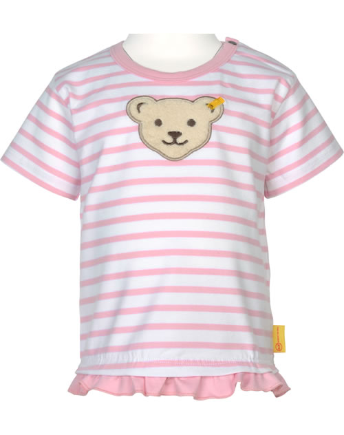 Kurzarmshirt aus weichem Jersey für Mädchen aus der Beach Please Kollektion von STEIFF. Schöne Details sind der große STEIFF Bär auf der Vorderseite und die Rüschenkante am Saum.