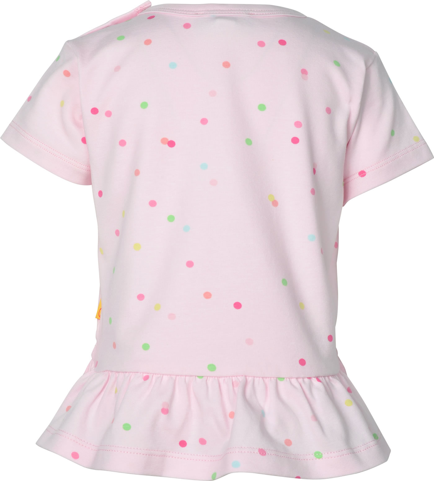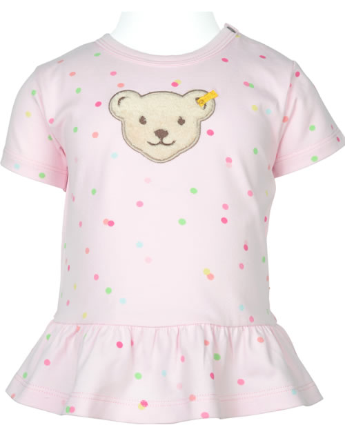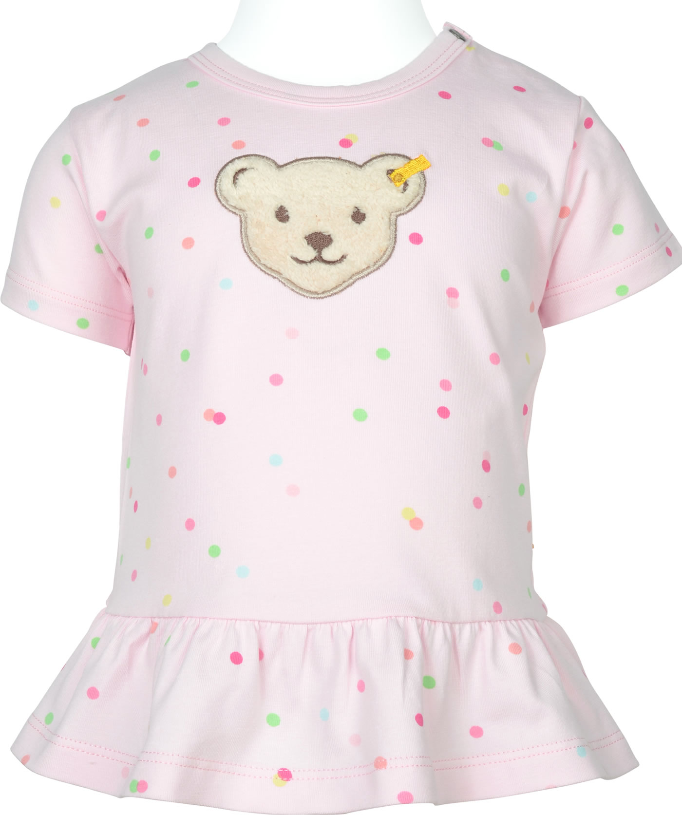 Gepunktetes Kurzarmshirt aus weichem Jersey für Mädchen aus der Garden Party Kollektion von STEIFF. Schöne Details sind der große STEIFF Bär auf der Vorderseite und die Rüsche am Saum.