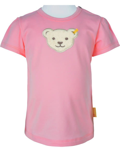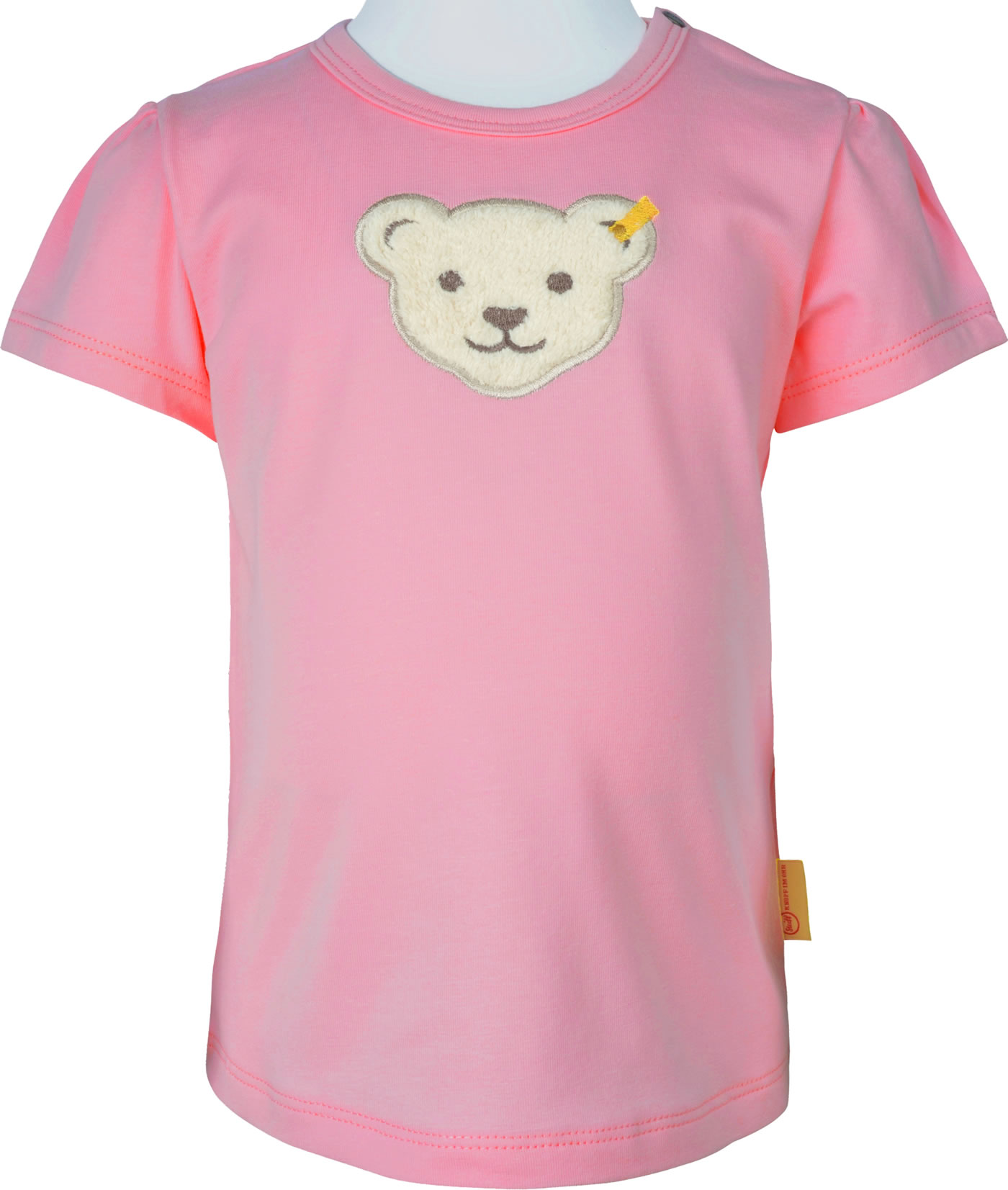 Kurzarmshirt aus weichem Jersey für Mädchen aus der Garden Party Kollektion von STEIFF. Schöne Details sind der große STEIFF Bär auf der Vorderseite und die gerafften Ärmel.