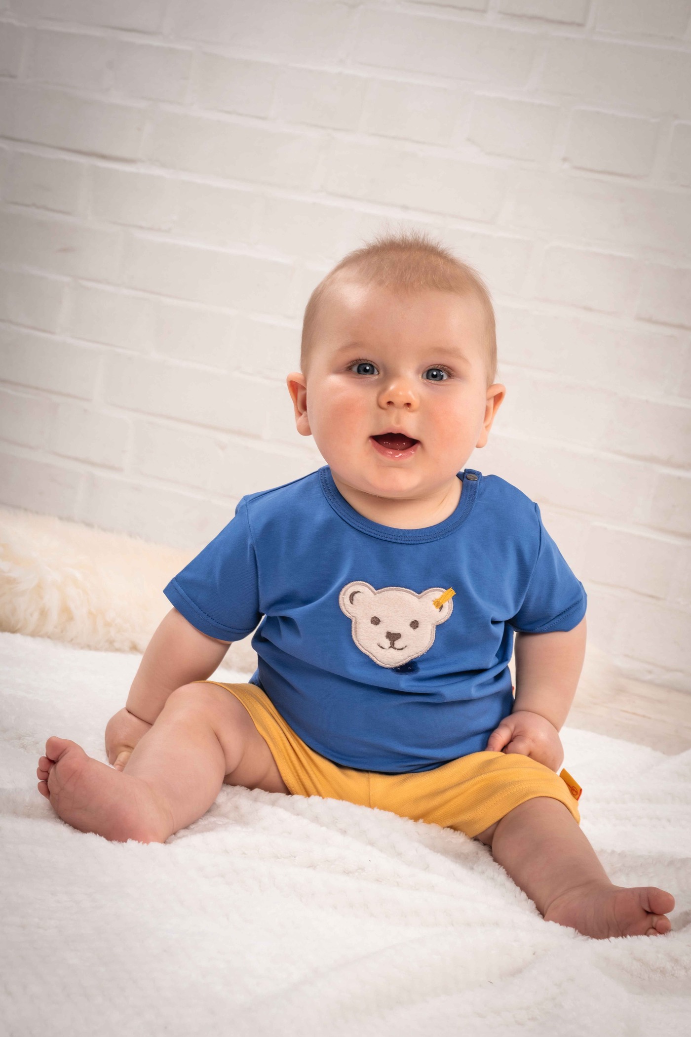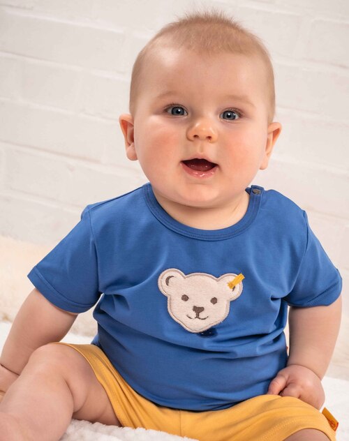 Kurzarm-Shirt für Jungen aus der Happy Hippo-Kollektion von STEIFF. Der STEIFF Bär auf der Brust ist ein Hingucker.´
