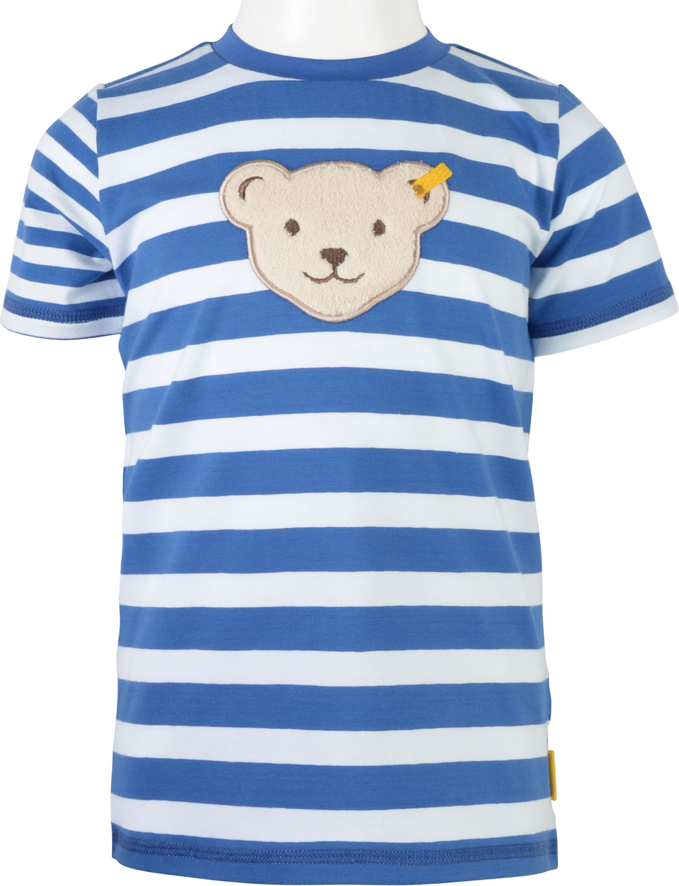 Gestreiftes Kurzarm-Shirt für Jungen aus der Happy Hippo-Kollektion von STEIFF. Der STEIFF Bär auf der Brust ist ein Hingucker. Das weiche Material sorgt für einen hohen Tragekomfort.