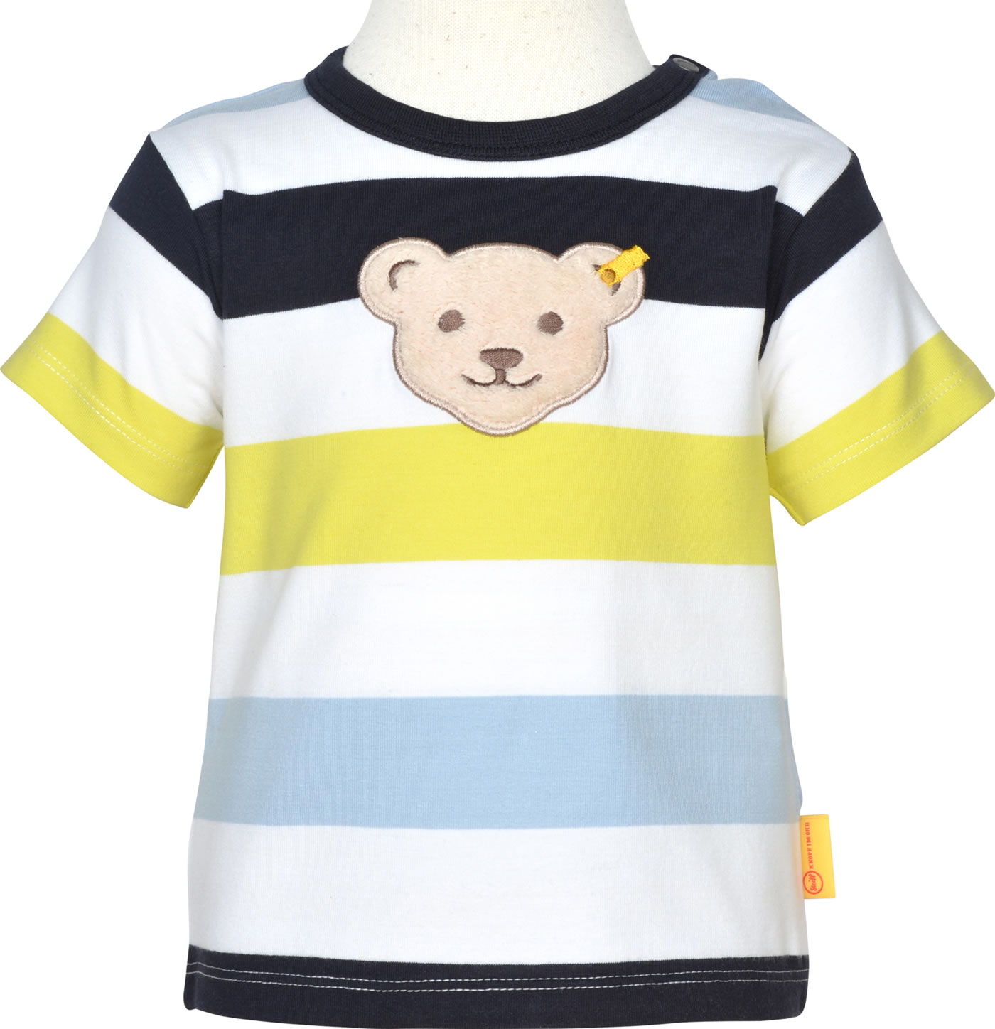 Kurzarm-Shirt für Jungen aus der Hello Summer-Kollektion von STEIFF. Ein toller Hingucker ist der STEIFF Bär auf der Vorderseite. Druckknöpfe auf der Schulter erleichtern das An- und Ausziehen.