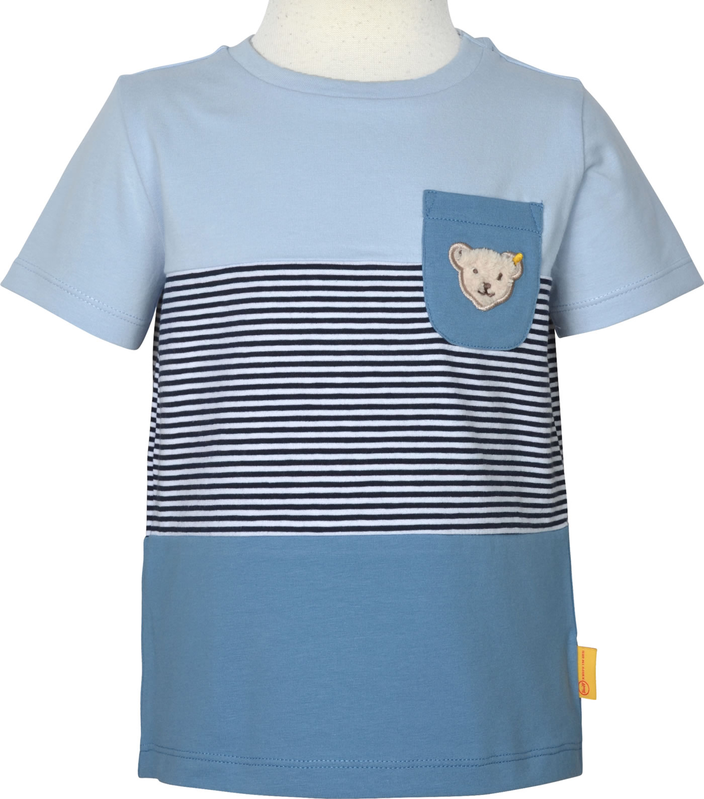 T-Shirt mit kurzen Ärmeln für Jungen aus der Hello Summer-Kollektion von STEIFF. Besondere Hingucker sind die Brusttasche mit dem STEIFF Bären und die Streifenmuster. Das weiche Material sorgt für einen hohen Tragekomfort.