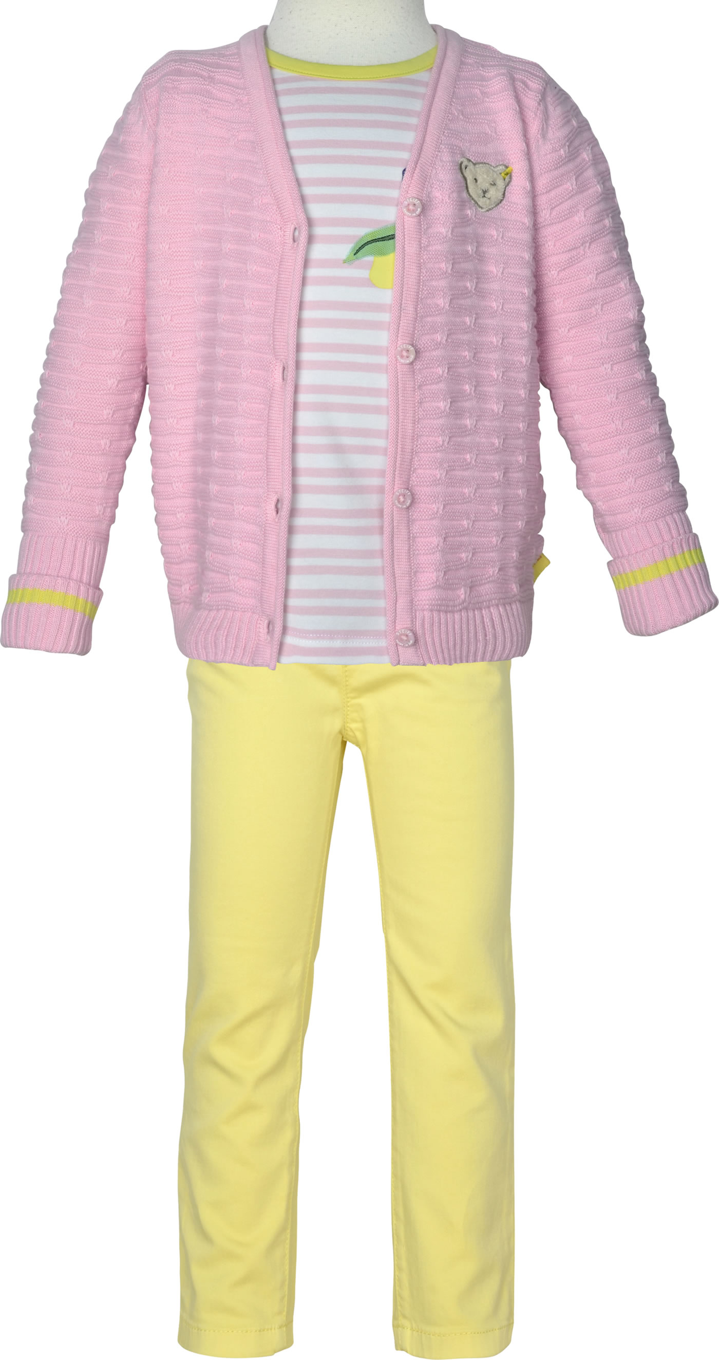 Kombinationsempfehlung: Auf dem Detailbild zusammen mit den Artikeln Steiff Hose HELLO SUMMER Mini Girls yellow cream 2113206-2005 YELLOW CREAM (St21132062005) und Steiff Strickjacke HELLO SUMMER Mini Girls pink lady 2113221-3033 PINK LADY (St21132213033).